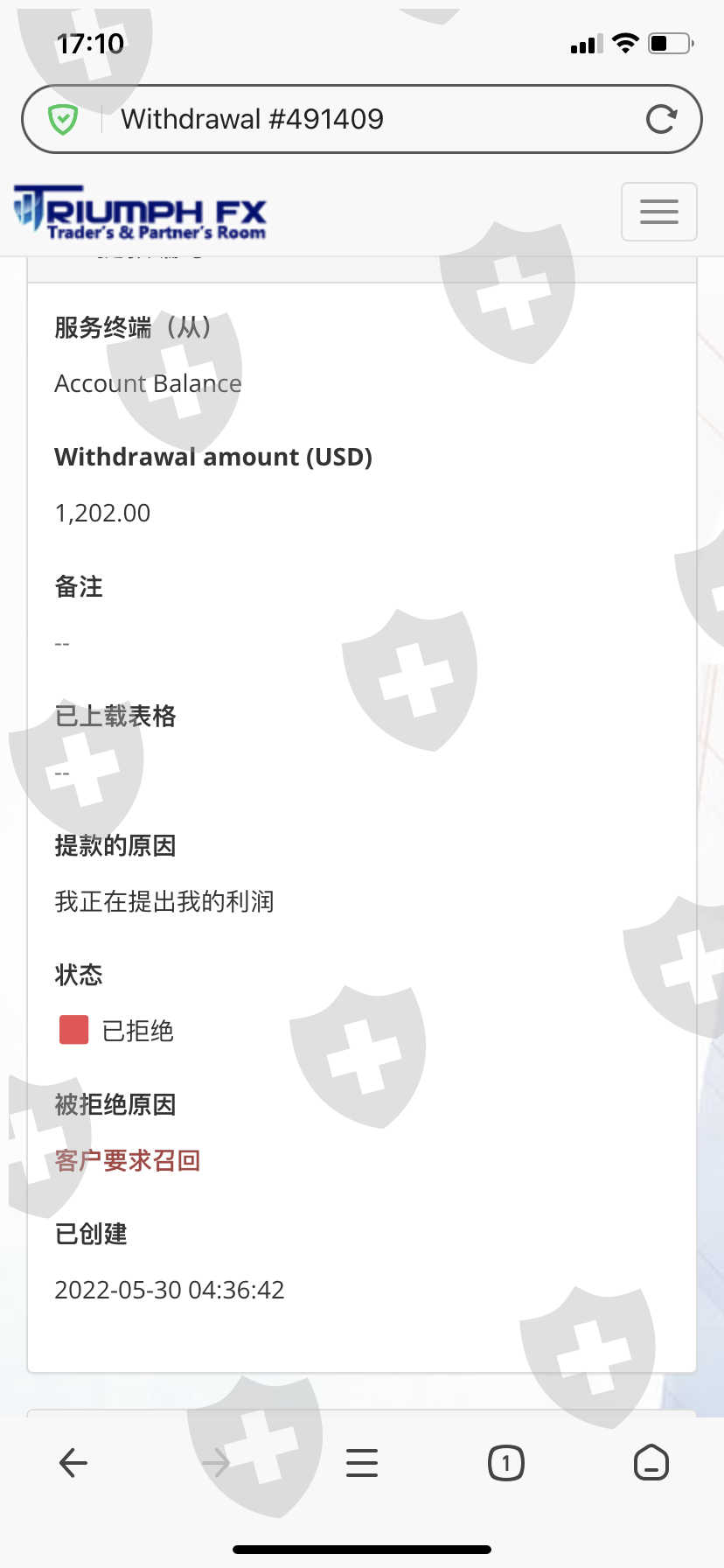 无法出金 TR