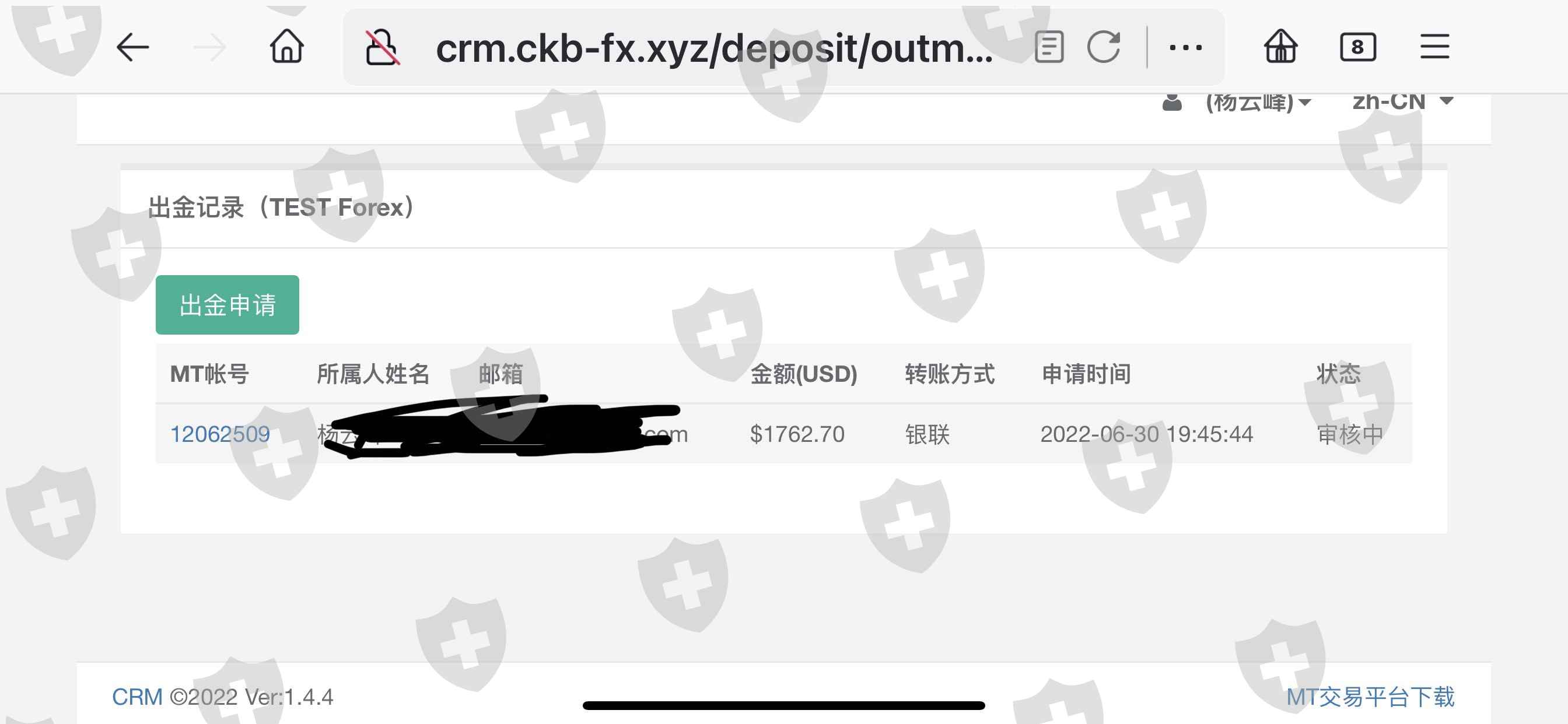 6月30日出金,到现在还在审核中,曝光。附上入金记录和出金记录