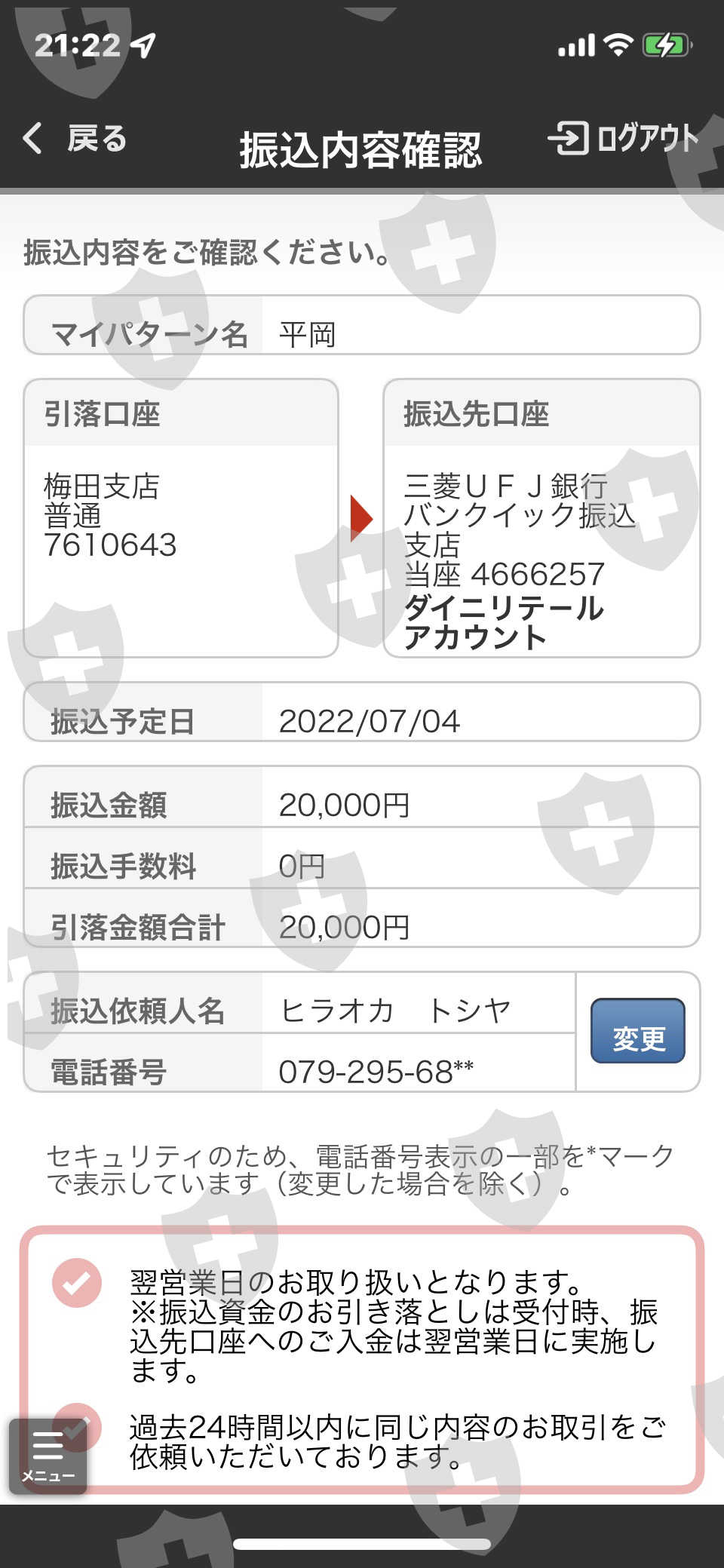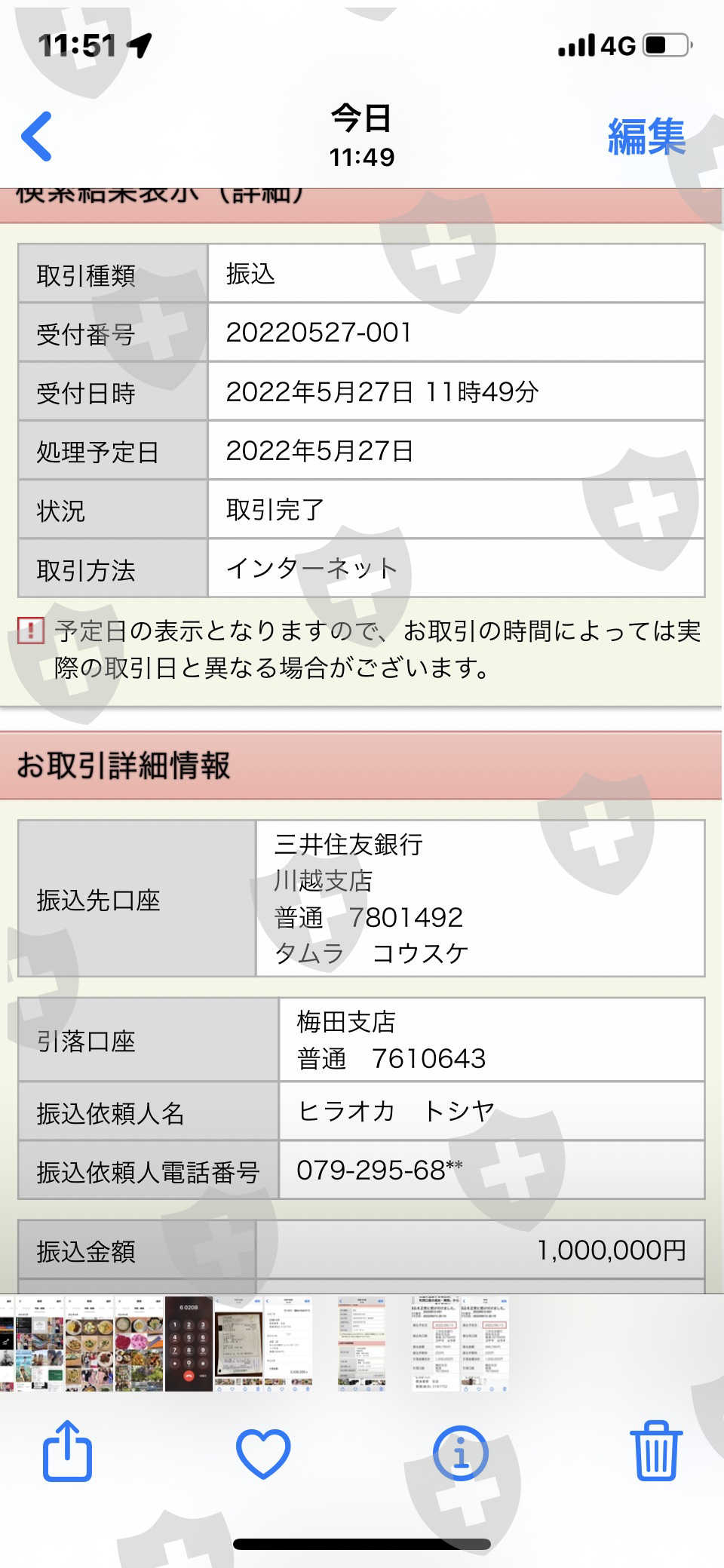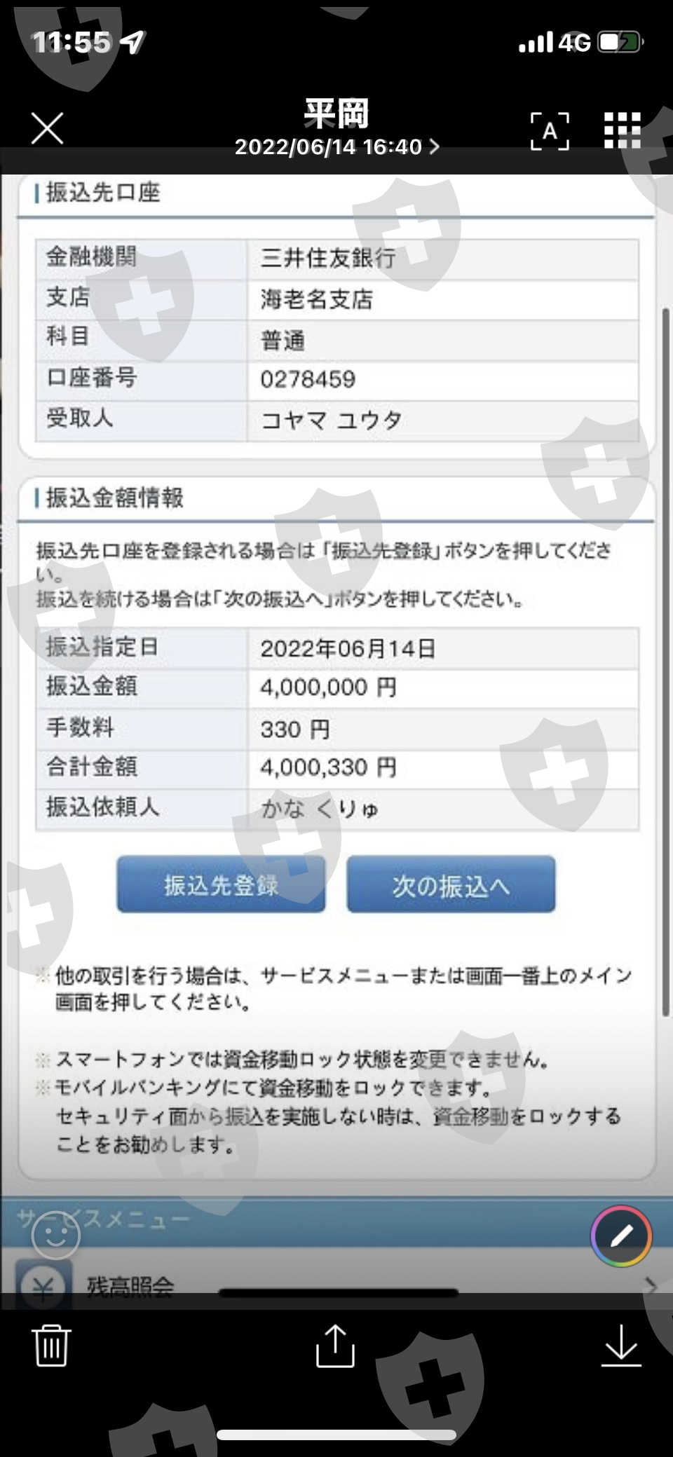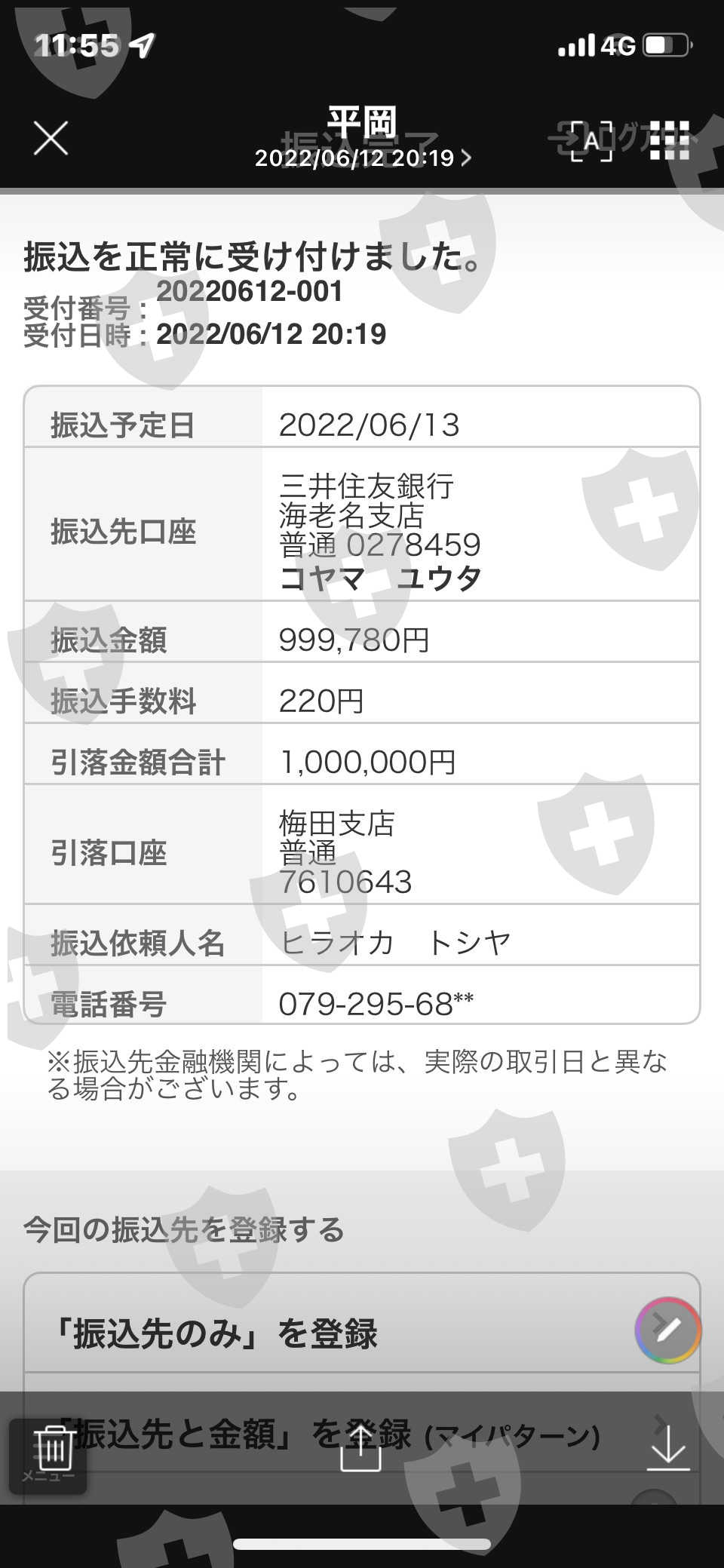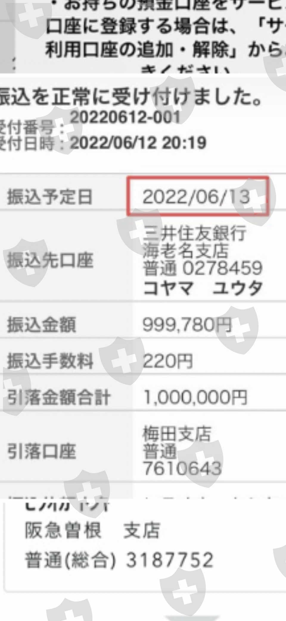 第一次 100,000 日元 从第二次开始,总共 5 次将 100 万日元转入个人账户