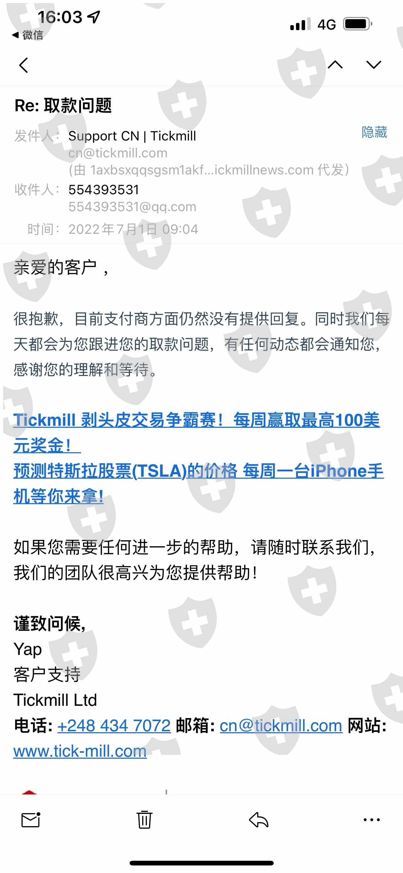 6月16在tickmill平台出金2200刀,取款方式为中国网银,取款编号: H0P5MS0EA470O9RG