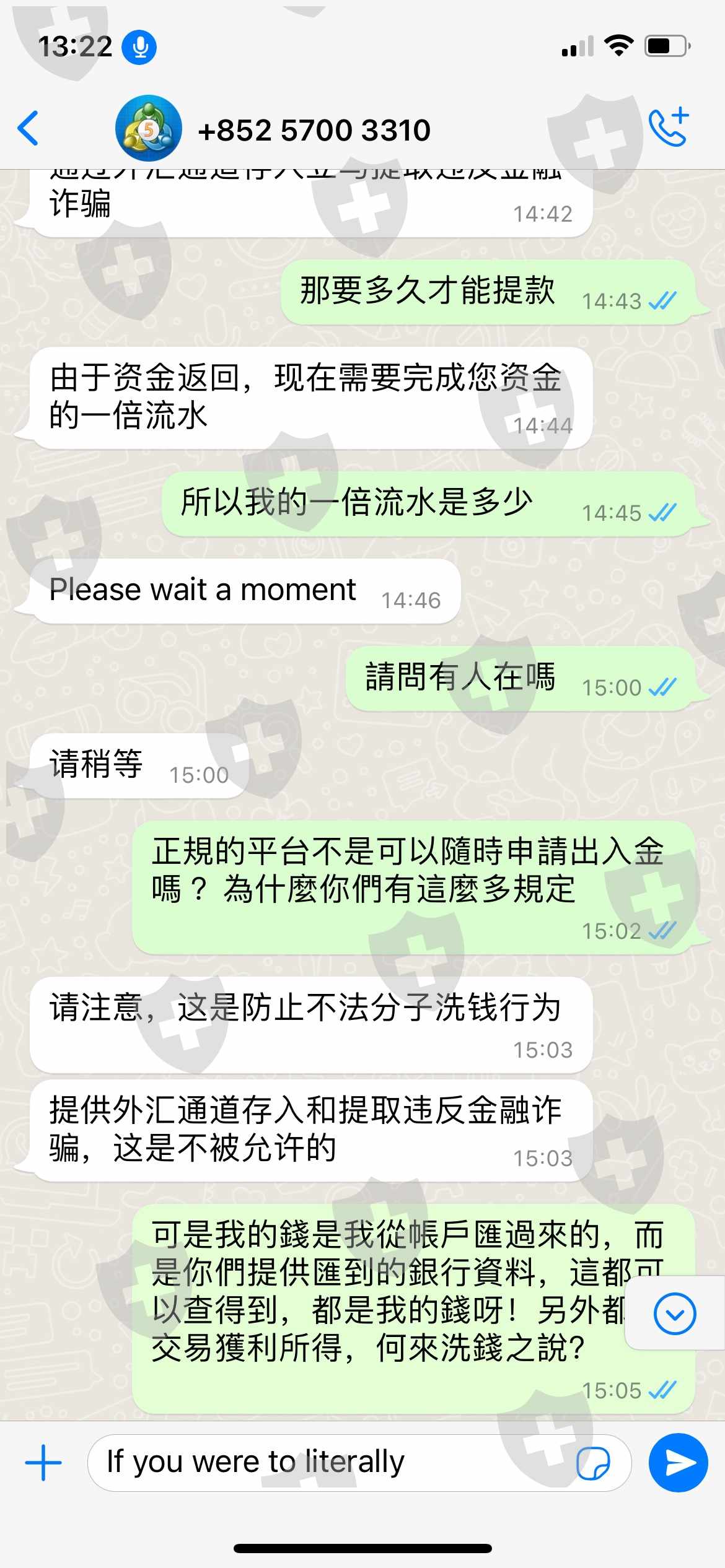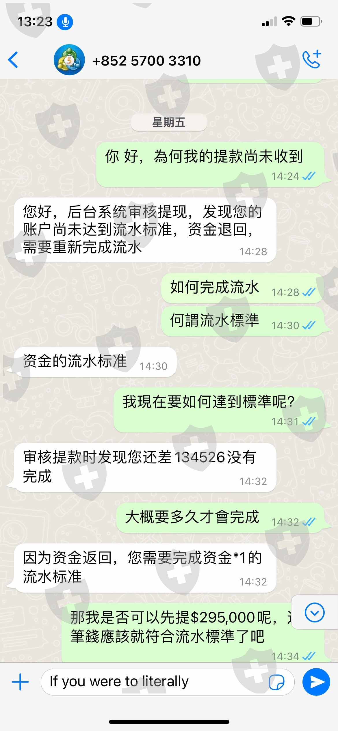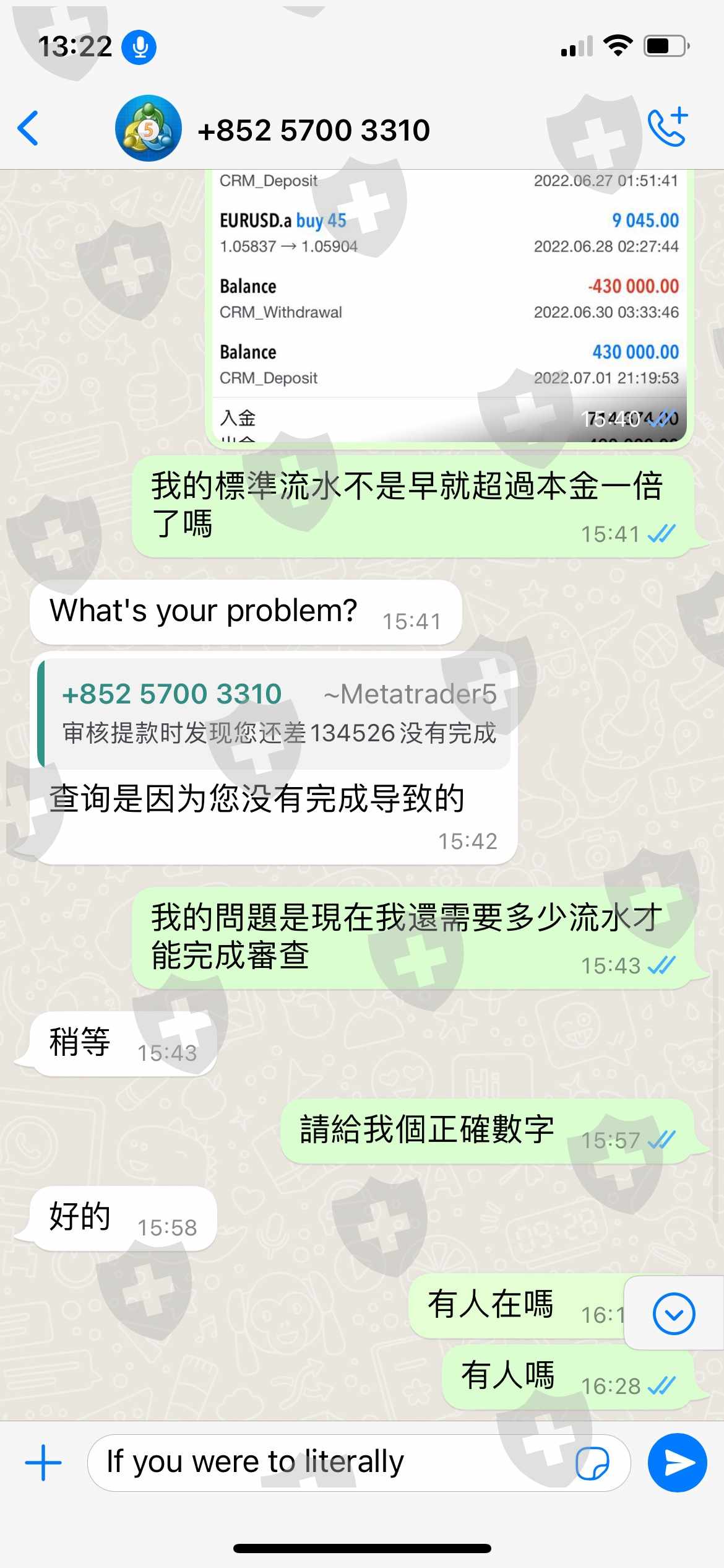 12)7月5日因為目前已經達到標準流水,想要提款時,專員完全不回應信息,目前帳戶内的結餘款是$506,846.15。