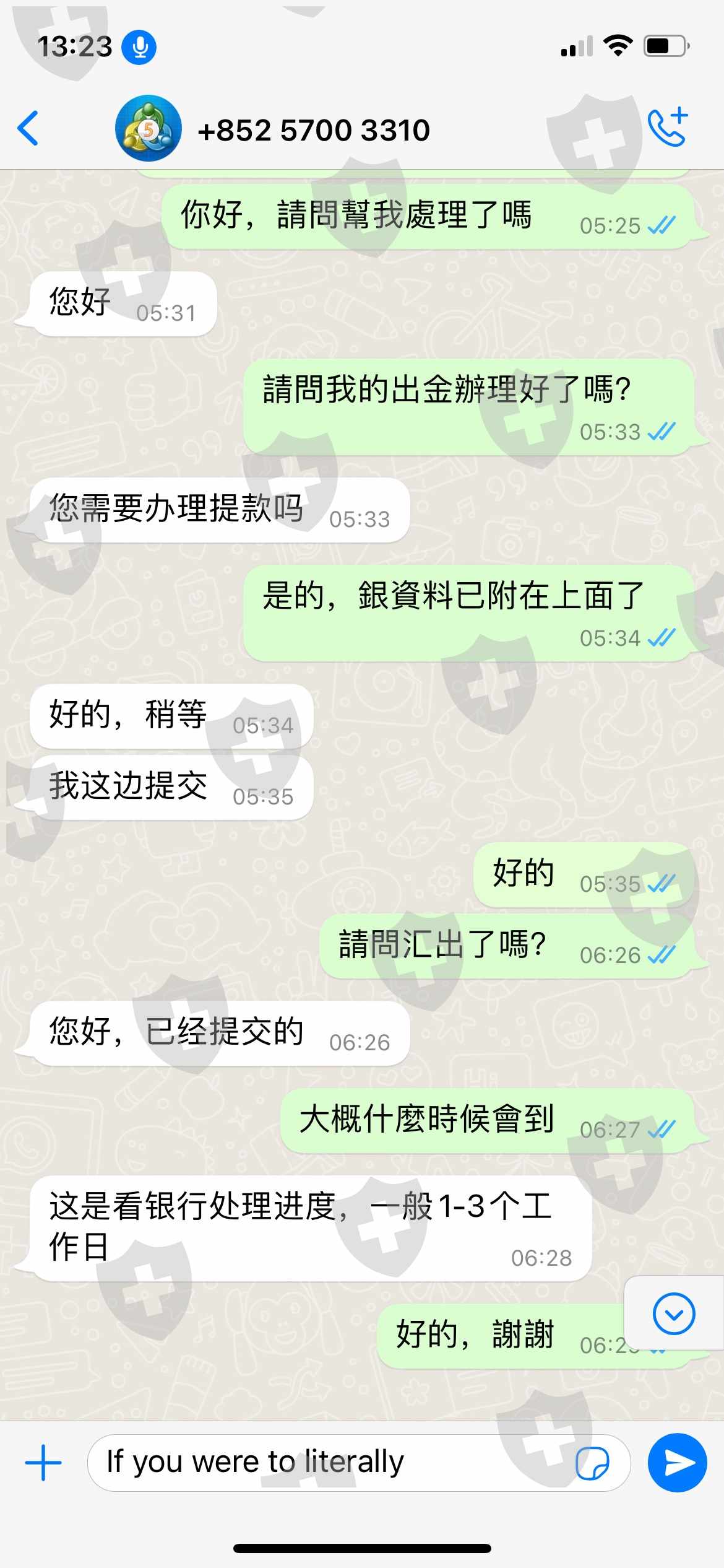 所附上的,照片是跟專員在Whatsapp上面最後的對話,煩請參考,如需更多詳細資料請隨時與我聯絡,必當立刻送上。