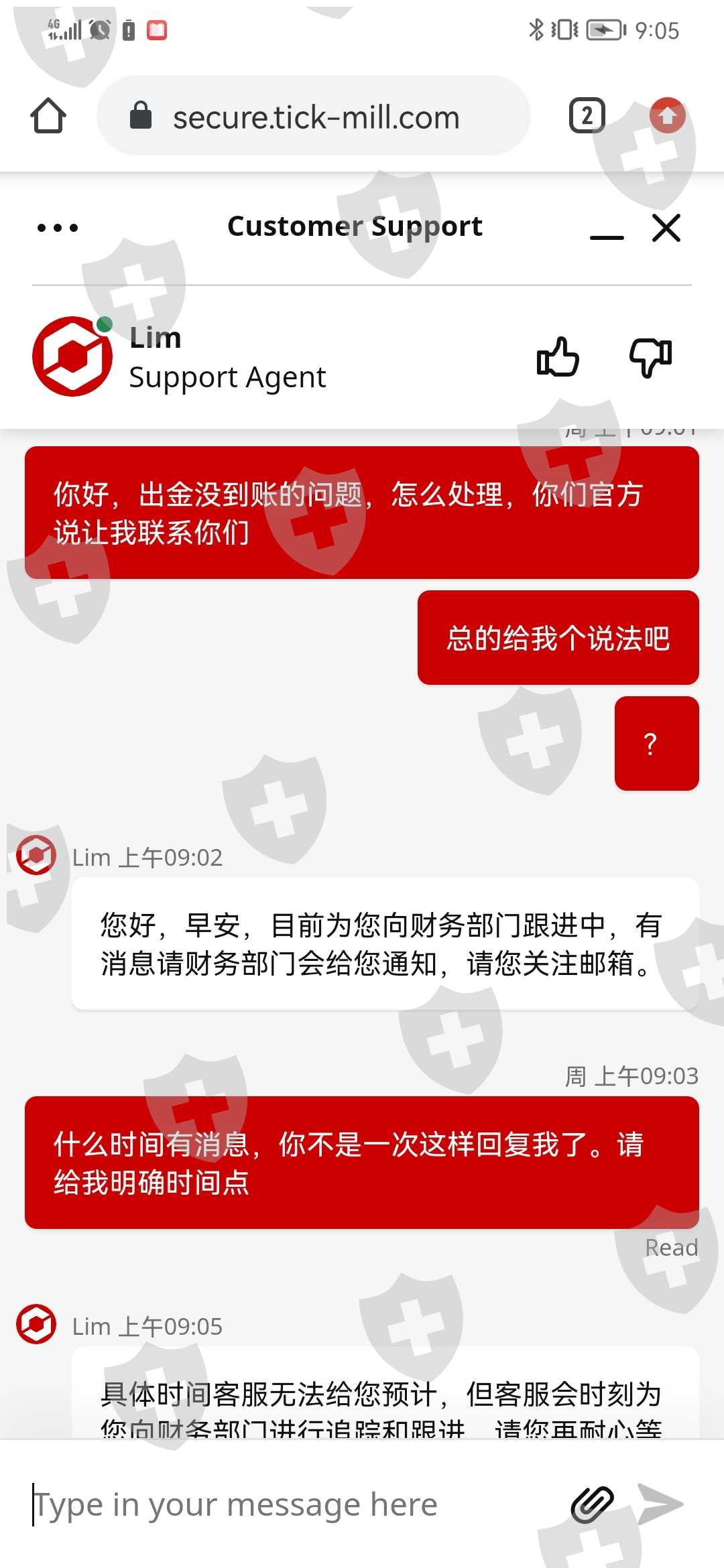 6月15号申请出金,16号扣款,至今天7月6号,没到账。期间发过银行流水证明给交易商,也多次和在线客服沟通,一直让等,未有具体的处理结果。