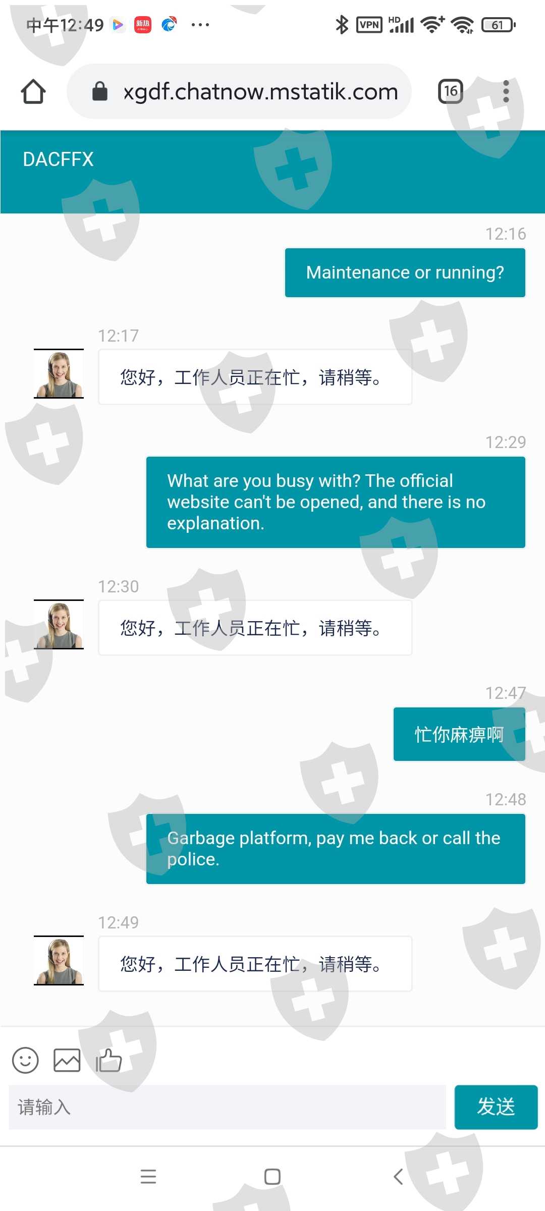 垃圾交易商入金第二天就无法打开网站了https://dacffx.com/ 客服都是机器人也不回复