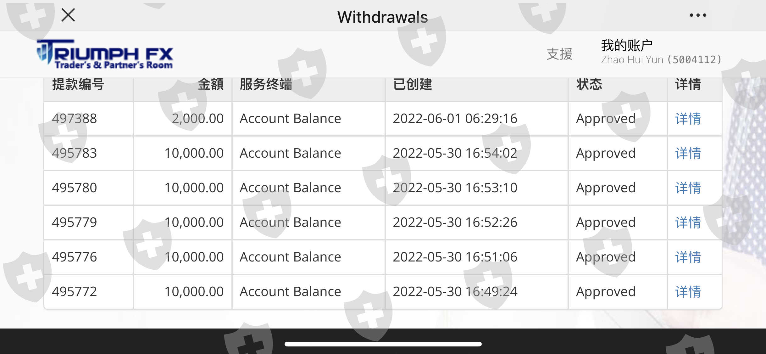 我在TriumphFX德汇 5月31日批准提现了5万美金,提款编号分别是495783、495780、495779、495776、495772五笔,每笔1万美金,到7月7号都没收到现金,已超过35天还没到账