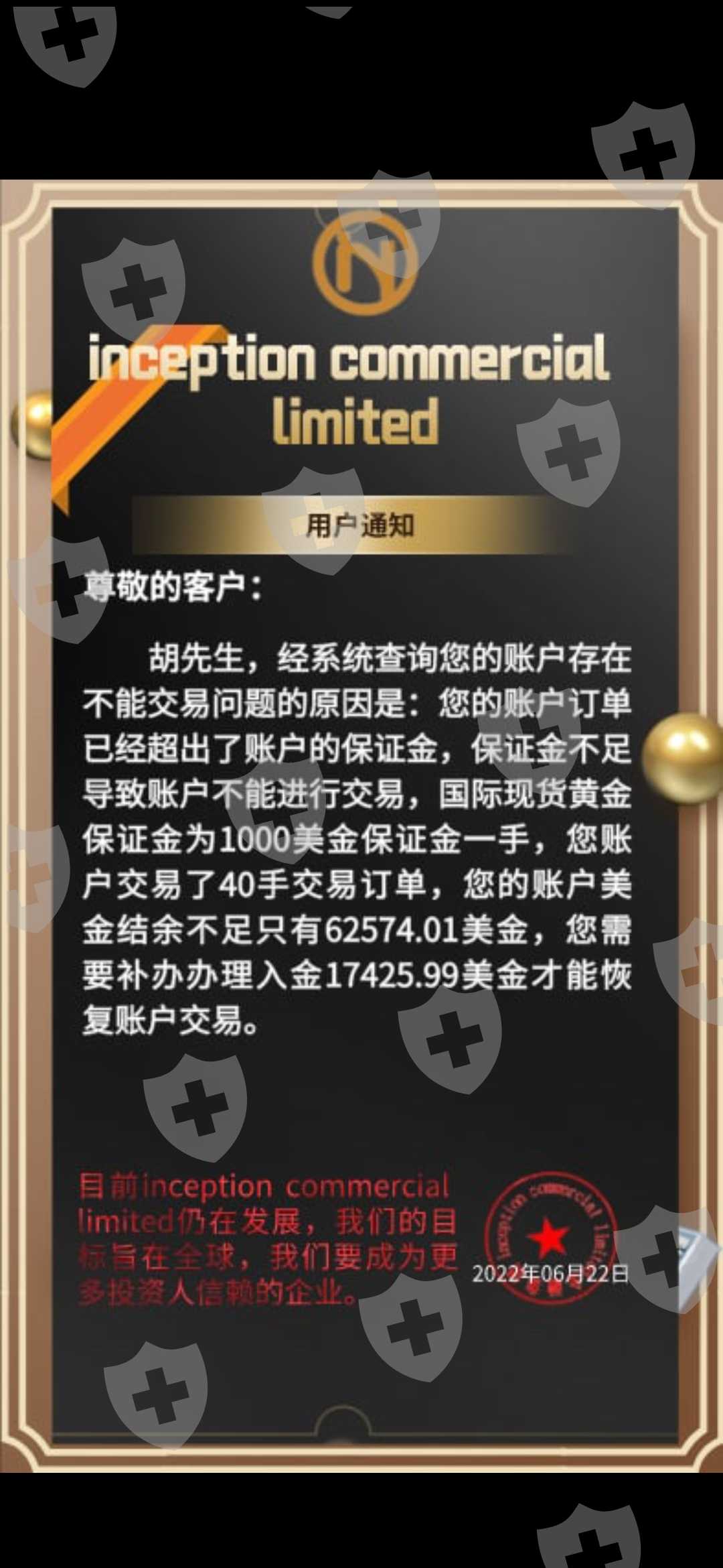这个平台根本出不了金,并且还诱导缴纳各种保证金及税金,现在客服自己当时带着做金市的人都消失,联系不上,账号也不能登录。就是所谓的李家军,大家不要再被骗了,希望平台加强监管力度
