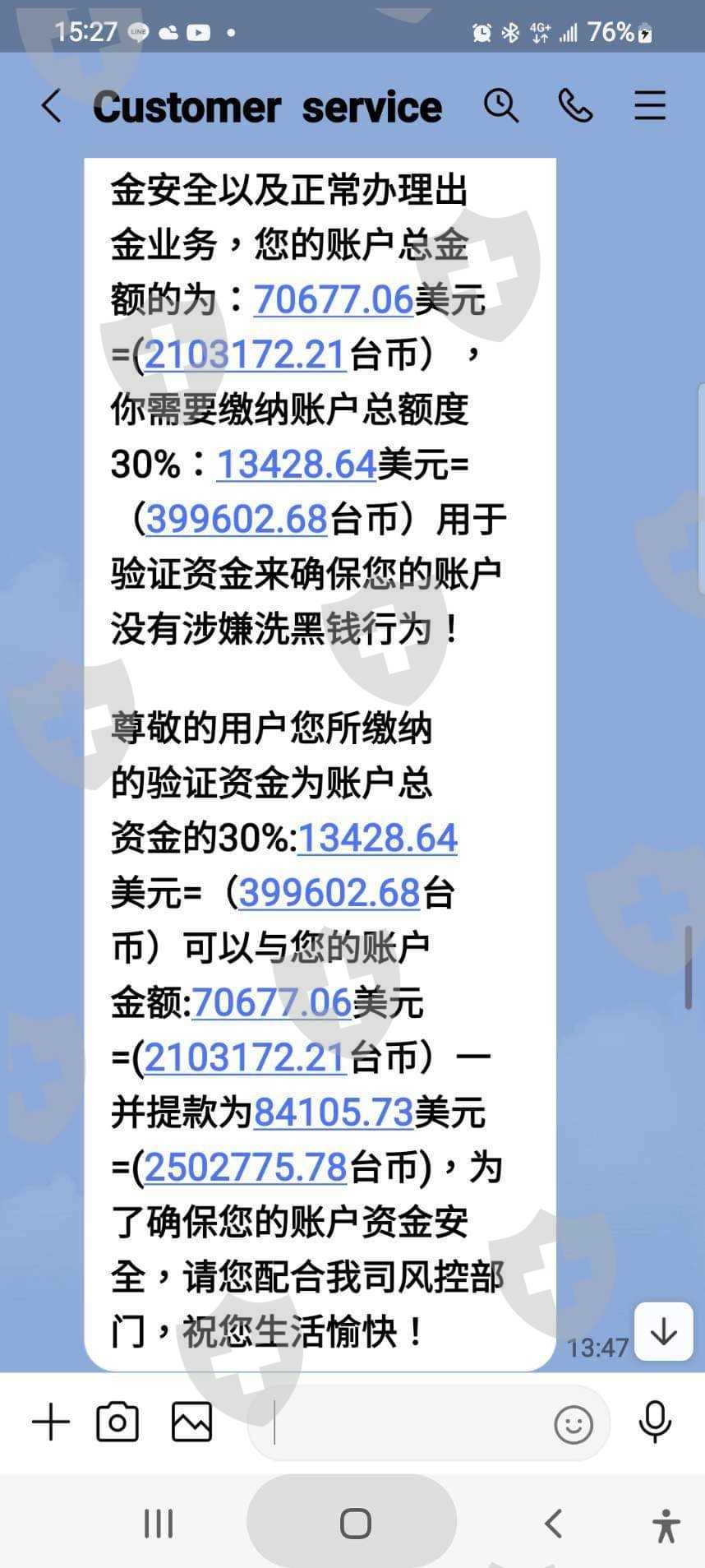 請問一下我有申請出金,網站維護後我一直沒再登錄帳戶,後來有朋友教我重新登錄,登錄後再操作行情,操作完不久,line客服就聯繫我說我這樣涉嫌洗黑錢,必須繳納30%保證金來證明不是洗黑錢,30%對我來說已經粉多我沒辦法了,期限內不繳納就要凍結帳戶跟刪除,請問VOREX卷商可以隨意刪除客戶的帳戶嗎?裡面的錢是客戶辛苦的血汗錢啊,請問我要如何做才能完全提領我外匯帳戶裡面的錢呢?