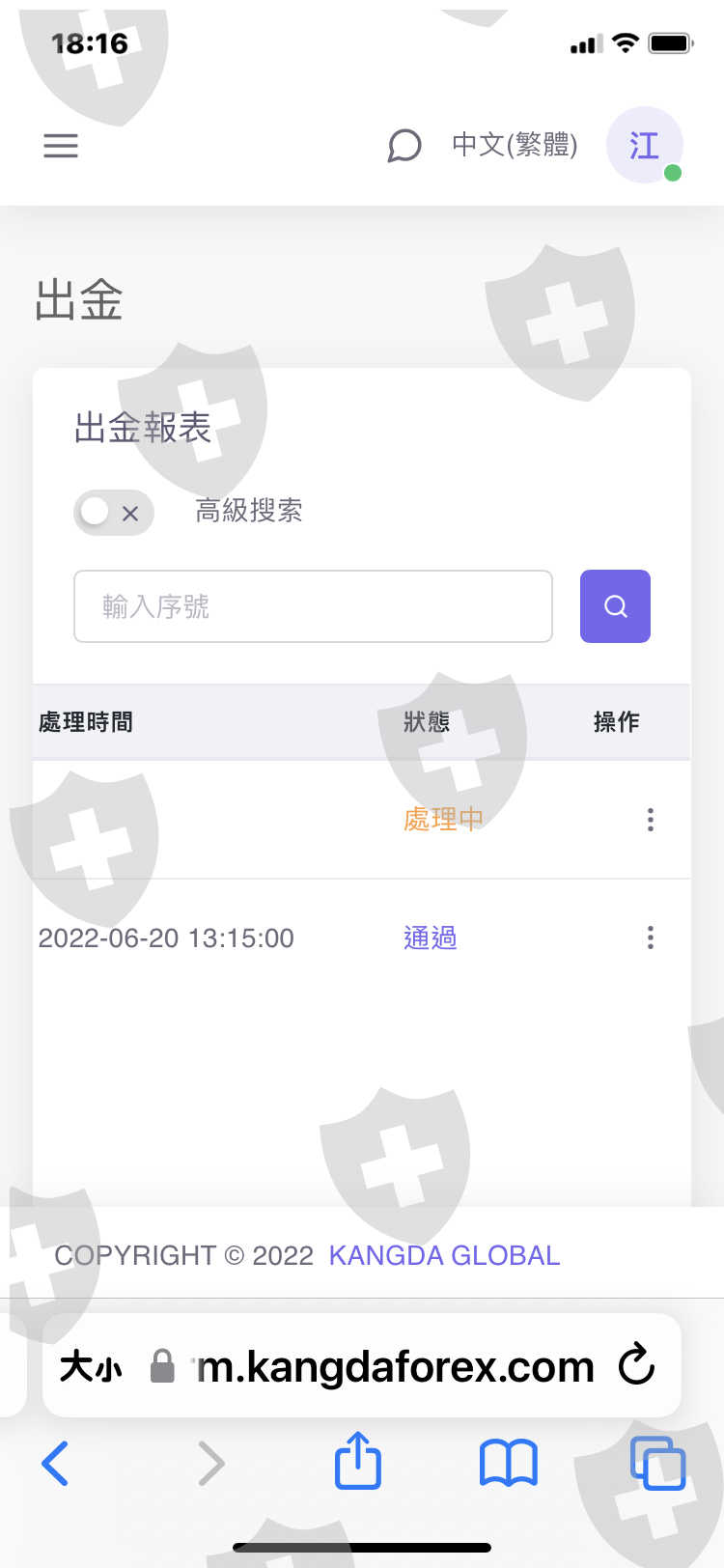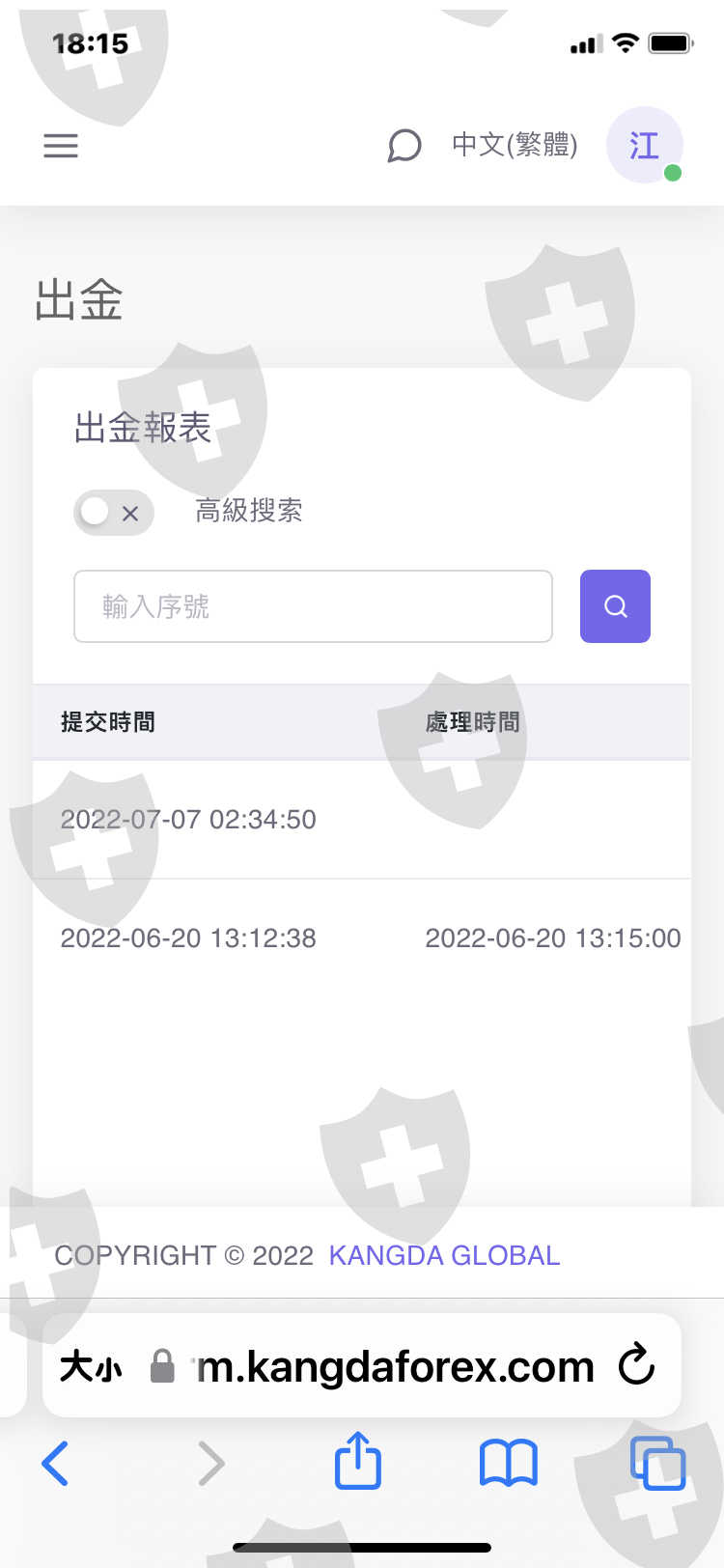 第一次出金2022/6/2,100很快就通過,第二次出金1100從2022/7/7申請卡到現在,而且公司網站用行動上網,會出現此網站為詐騙平台