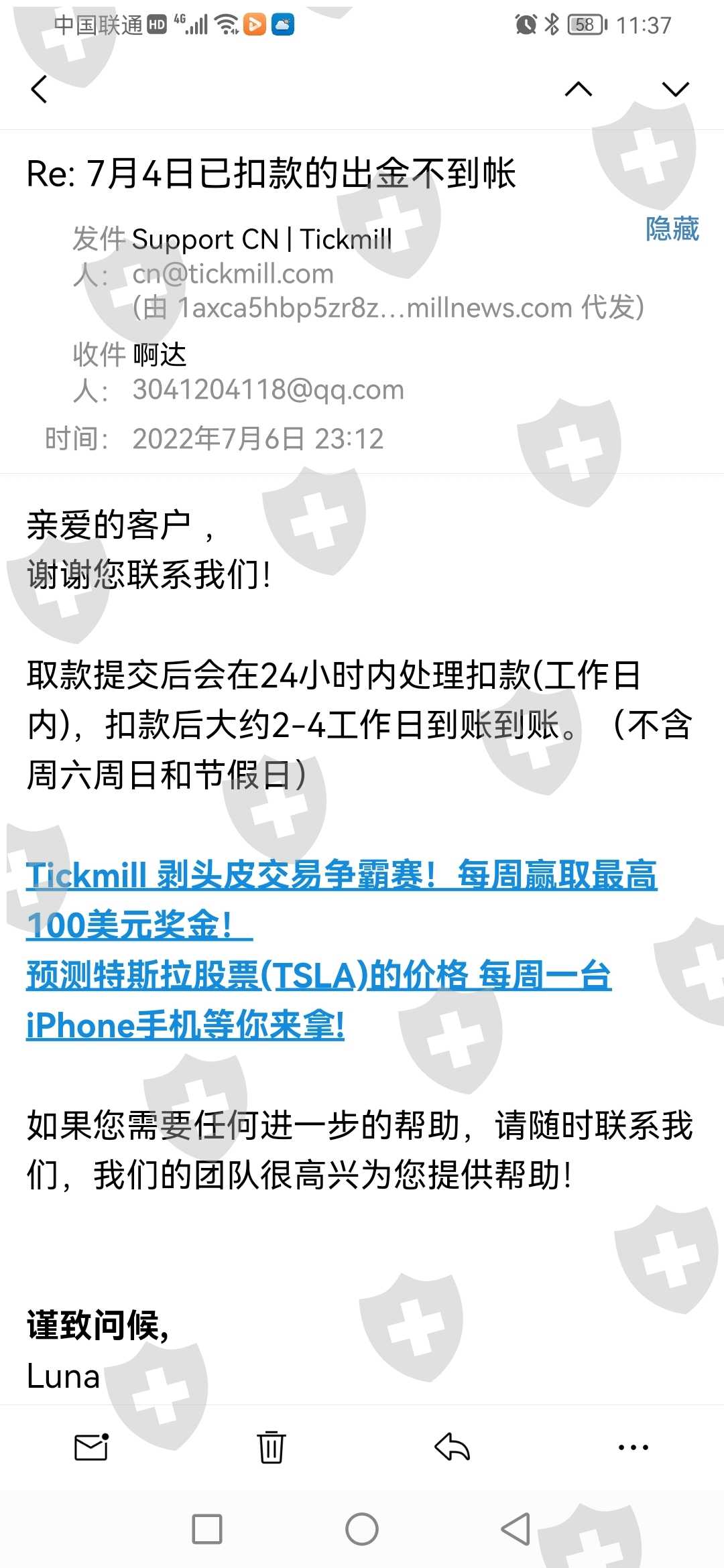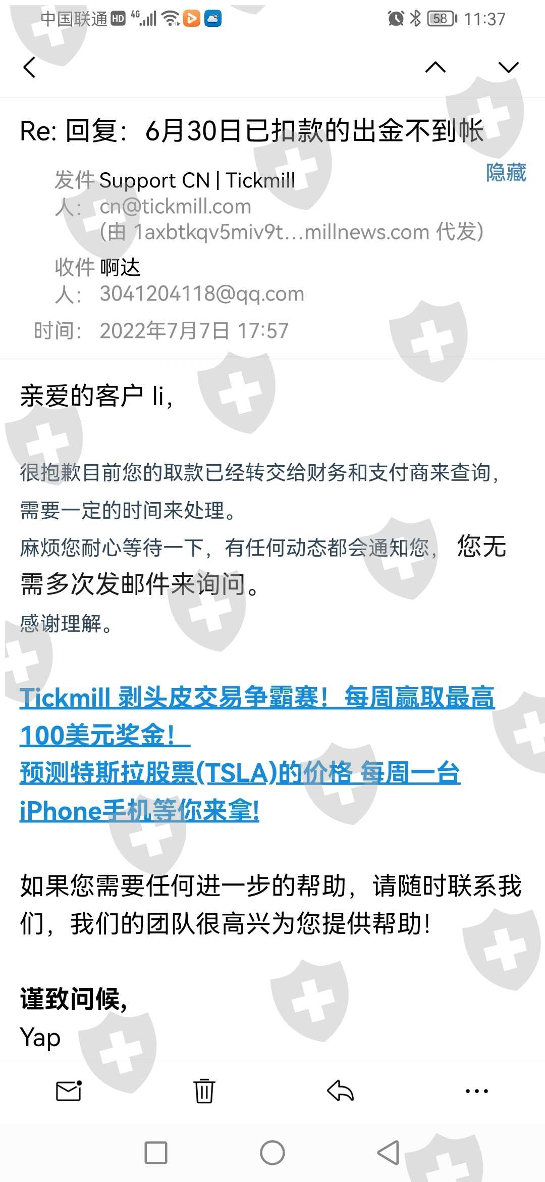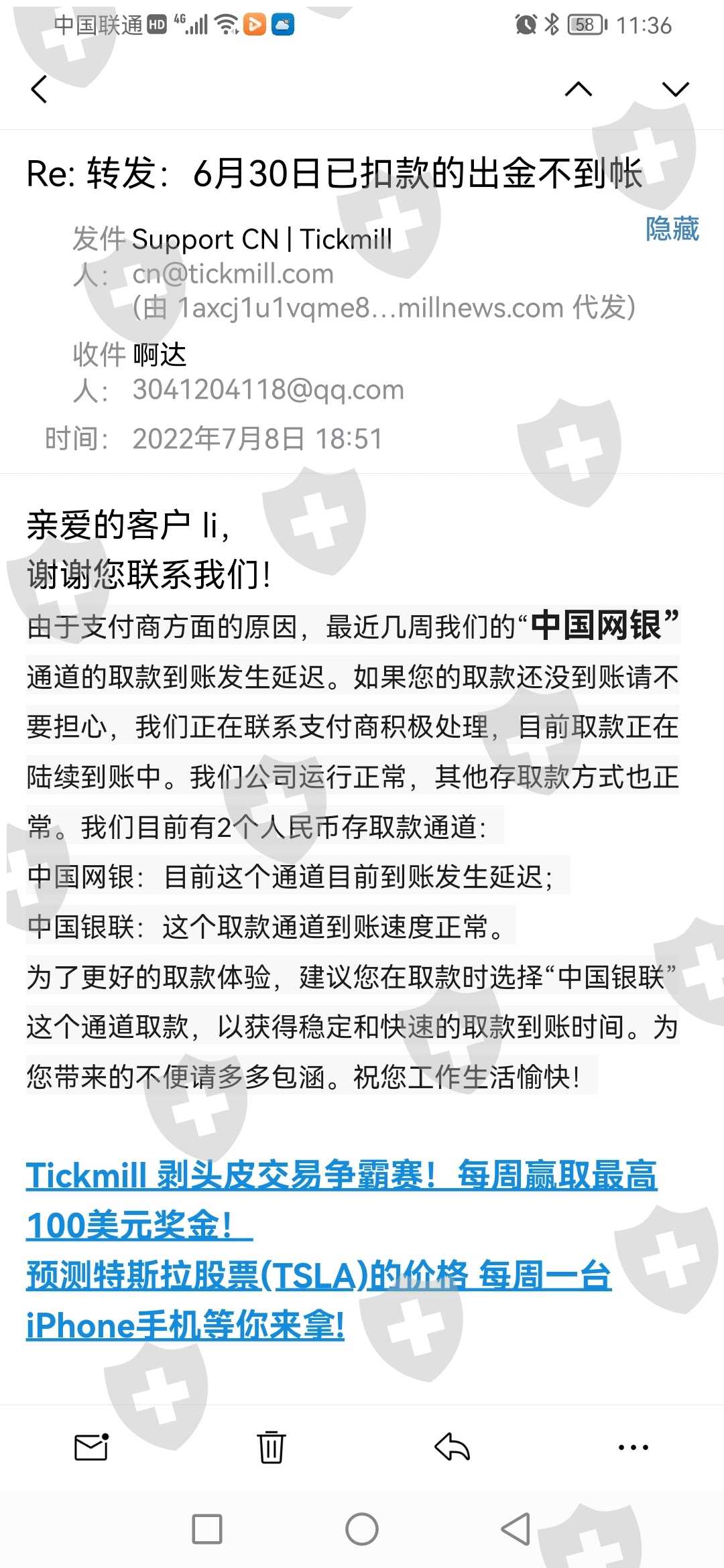 Tick mill平台无法出金
