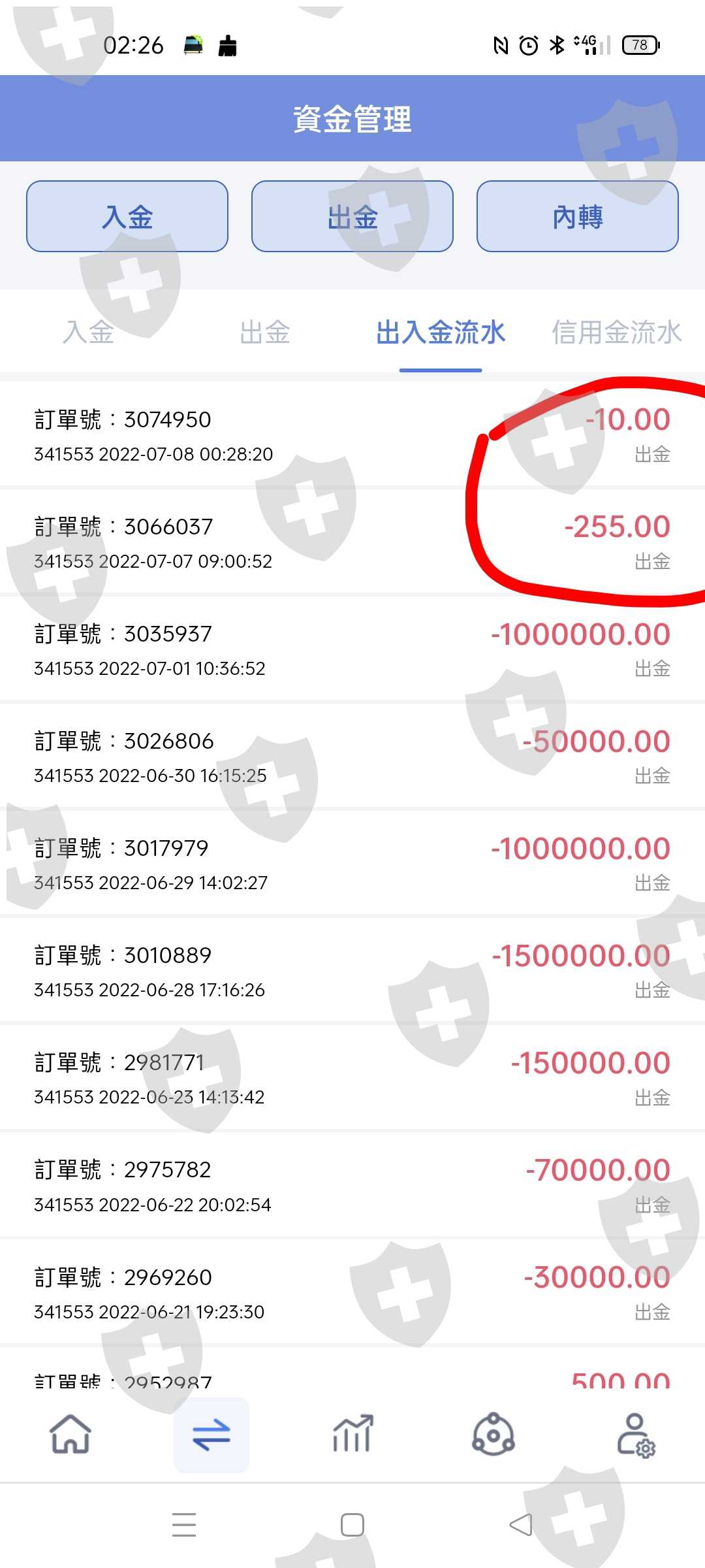 划點嚴重,造成3秒爆倉,虧損嚴重,補虧損後,不給出金,資管帳戶出金動手腳,出入流水單照扣款,流向不知