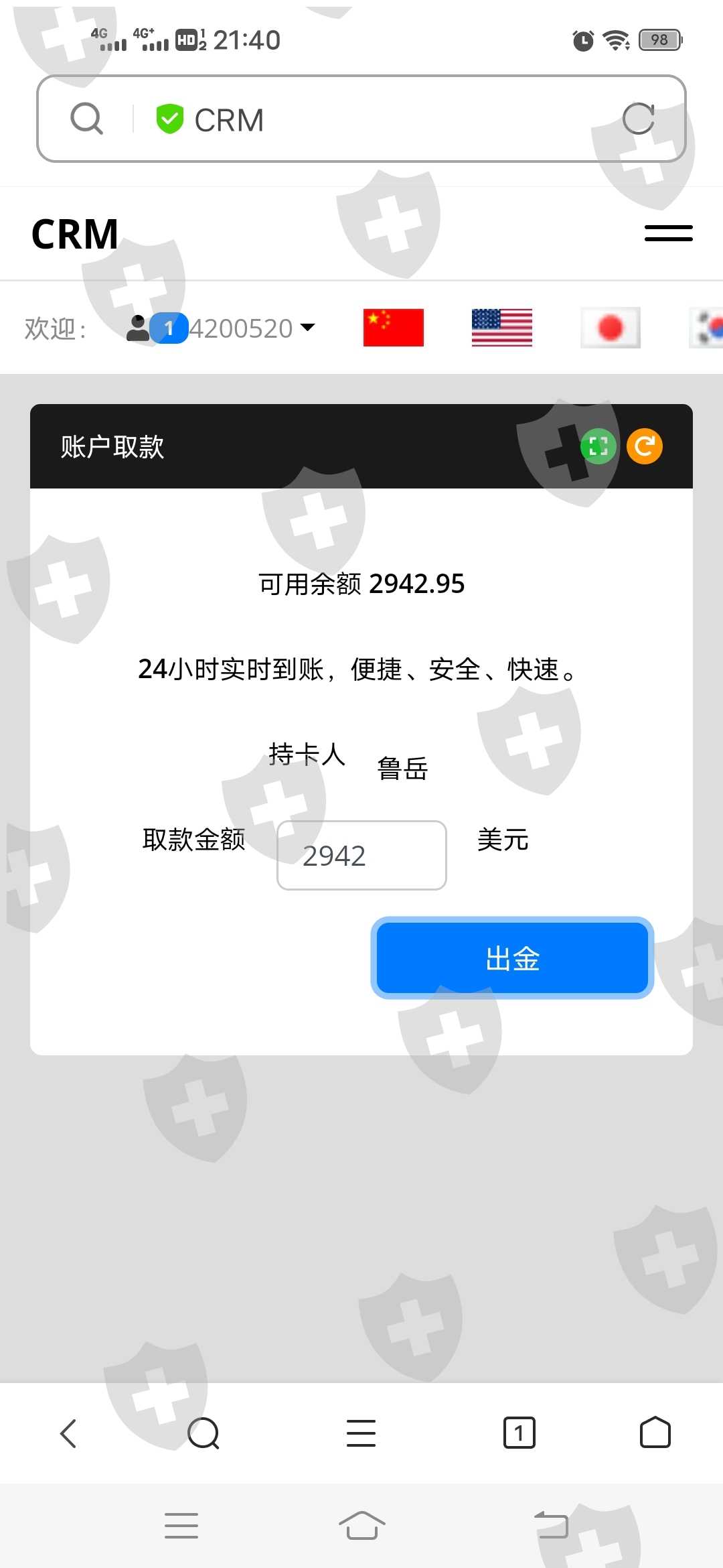 今天出金200美元以后再也无法出金,显示余额不足无法出金,可是账户有2900多美金而且账户无任何单子