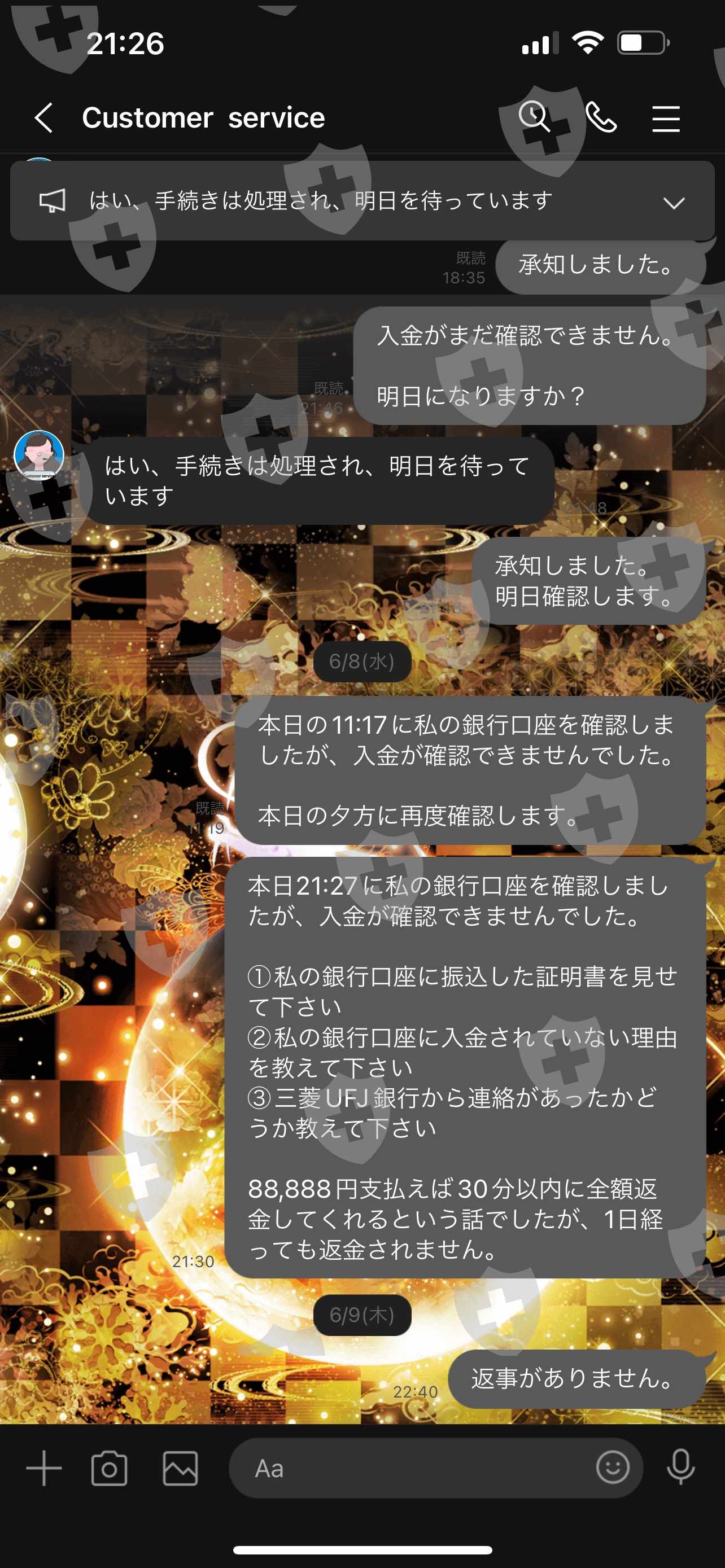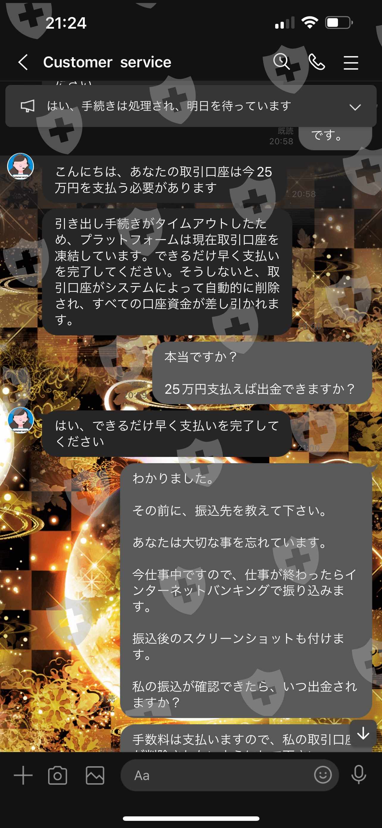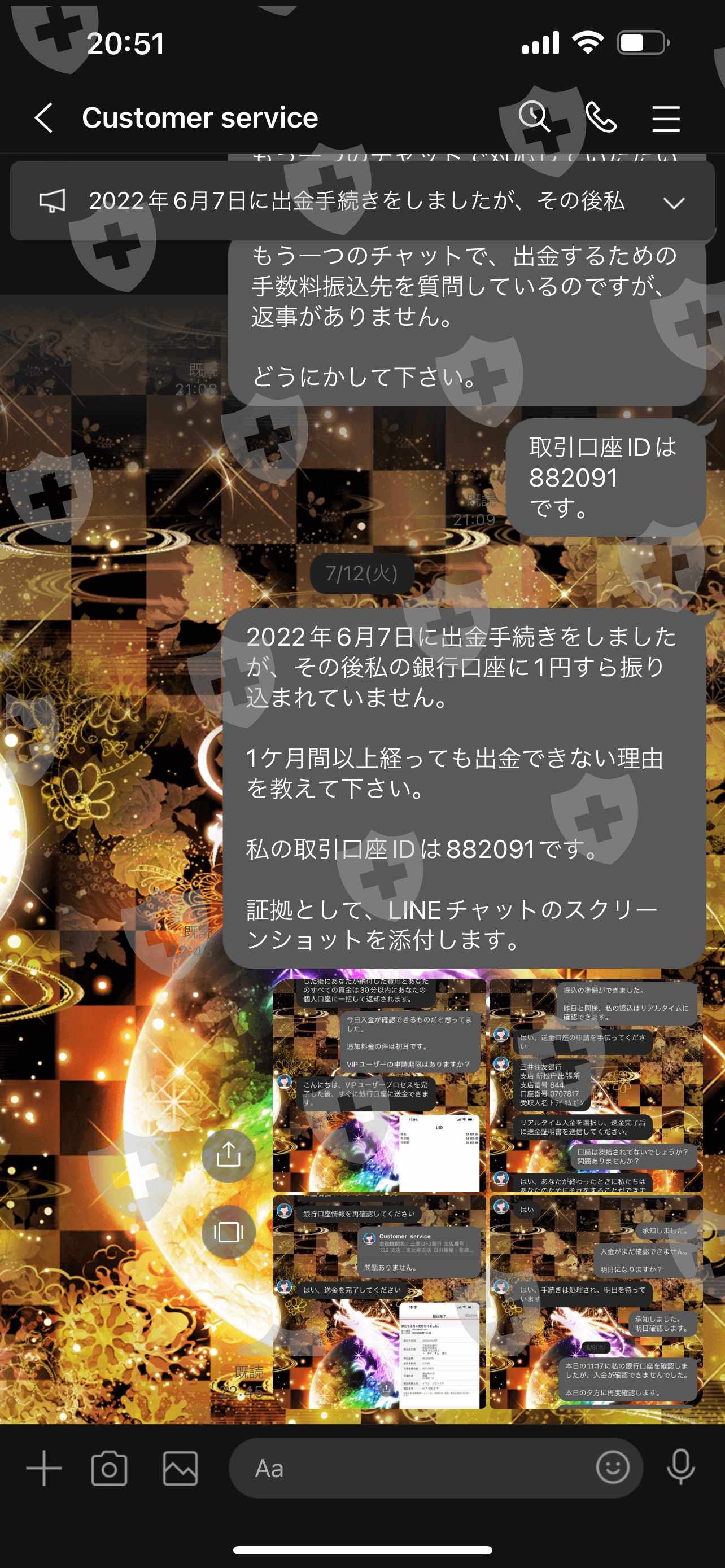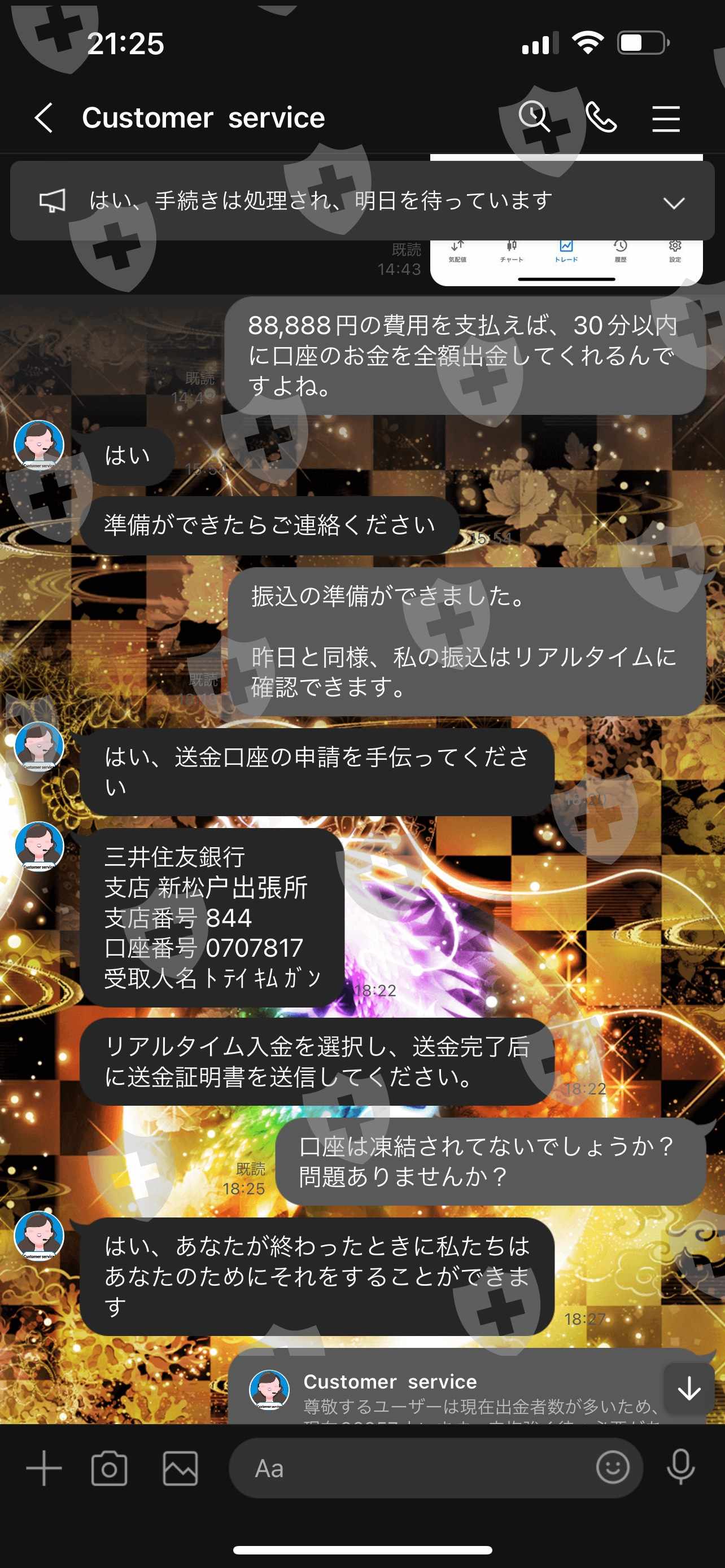 2022 年 6 月 6 日,我支付了 250,000 日元的提款费,从 Opson 的 MT5 账户中提取了 24,801.69 美元。 6月7日,客服表示目前有36857名提款申请者,需耐心等待,但如果额外支付88888日元的津贴,30分钟内就可以提款,所以会有额外津贴。我支付了88,888日元,但一个多月后仍然无法取款。
