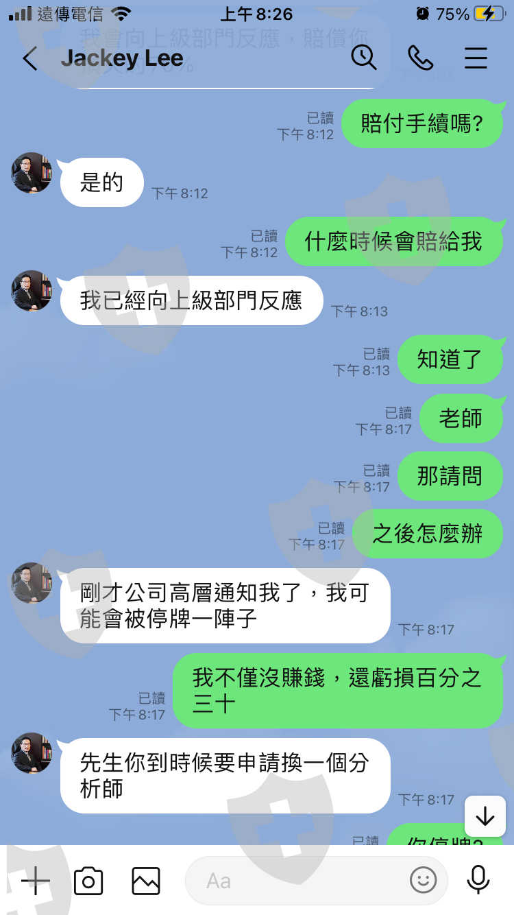 分析師誘導我操作高風險行情,導致爆倉,辦理賠付手續還要求我支付一半的保證金,才能申請賠付手續。