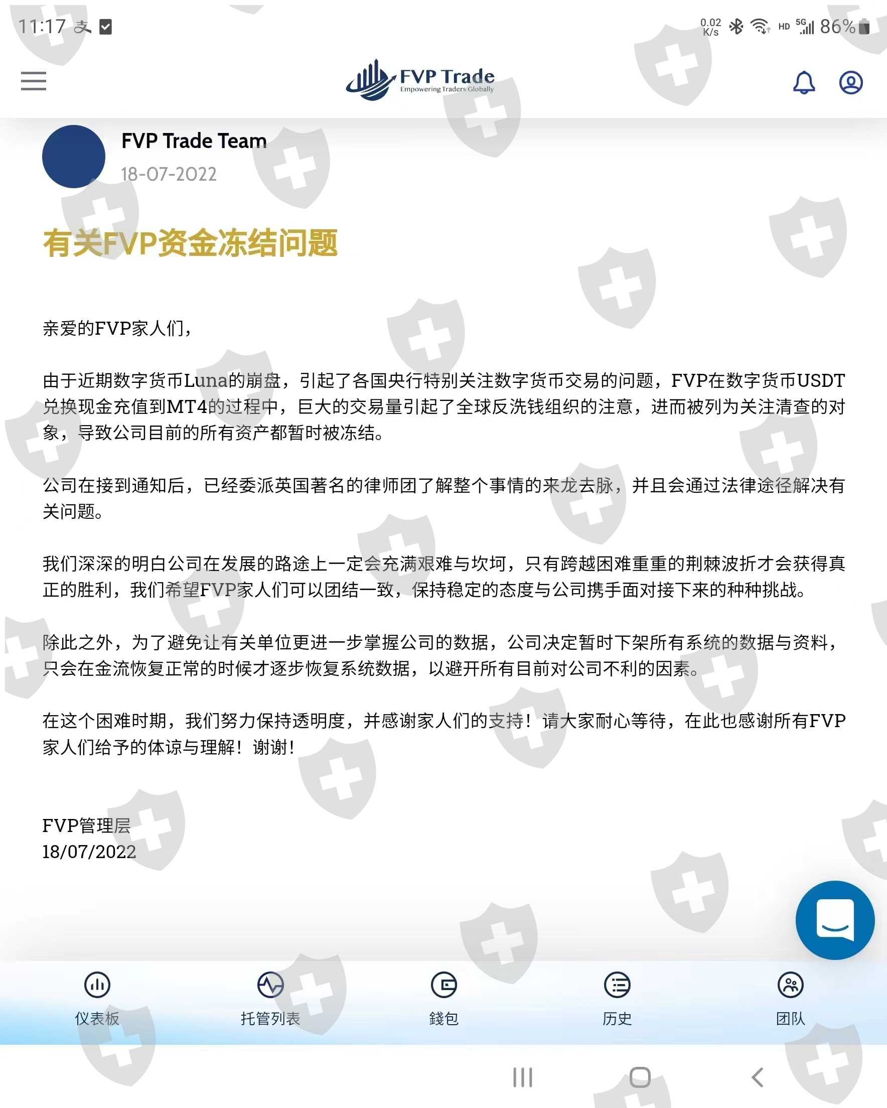 平台无限期维护,并未说什么时候开通,我们无法取消托管和出金