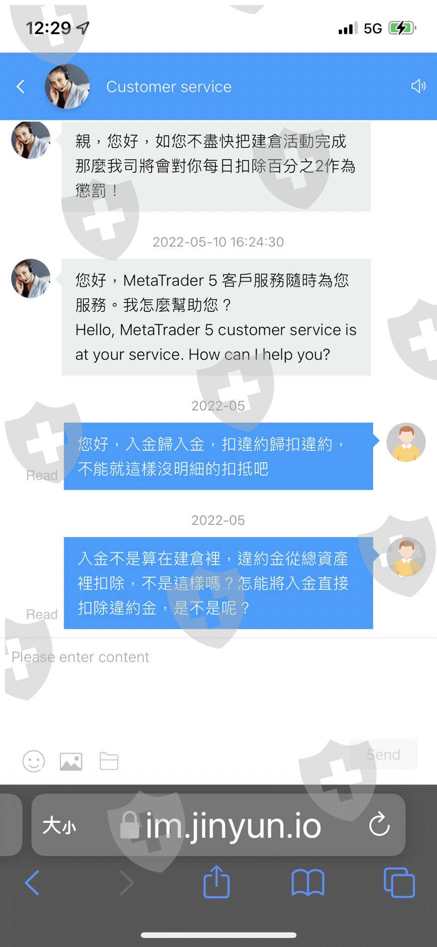 於4月初參加平台的建倉活動,客服告知在建倉活動期間每天會有本金1%的利息,但沒明確的告知完成建倉時間,1個月後開始每天扣除本金2%,詢問客服得到的答案是超過建倉完成時間,會扣除本金的2%做為違約金,直到完成建倉就可以出金了,同時我也詢問客服完成建倉後還會有後續的違約金或是扣繳其它稅金?客服回答完成建倉後就可以立刻出金無需承擔任何費用,因此扣除違約金這理由我接受,畢竟是自己沒在時間完成,但在之後要完成建倉時,平台就將我入的金(200000TWD)直接扣除掉說是我要繳的違約金,為了想快點出建倉金,將最後的30000TWD入金建倉完成,此時跟客服提出金,客服卻回答因為我違約超出時間完成建倉,所以公司要審核1星期才能讓我出金,1星期也等了,再次詢問客服告知出金,結果客服又說我裡面有一筆款項涉嫌洗黑錢,要繳交本金50%的保證金才能出金,裡面的每一筆錢都是我ㄧ筆一筆存的,且只入無法出更沒任何交易行為,是要如何洗黑錢?平台想盡辦法利用活動誘導投資者入金,等完成活動後就以各種理由拒絕辦理出金業務,請投資者千萬別再上當