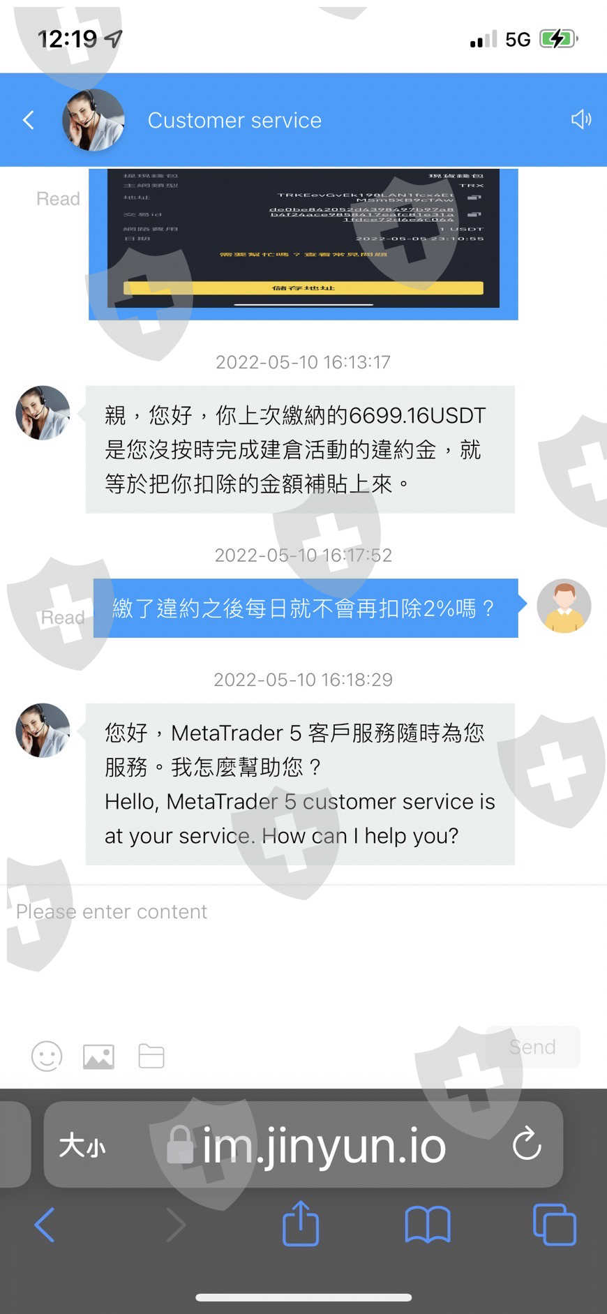 隨文附上與客服的對話紀錄