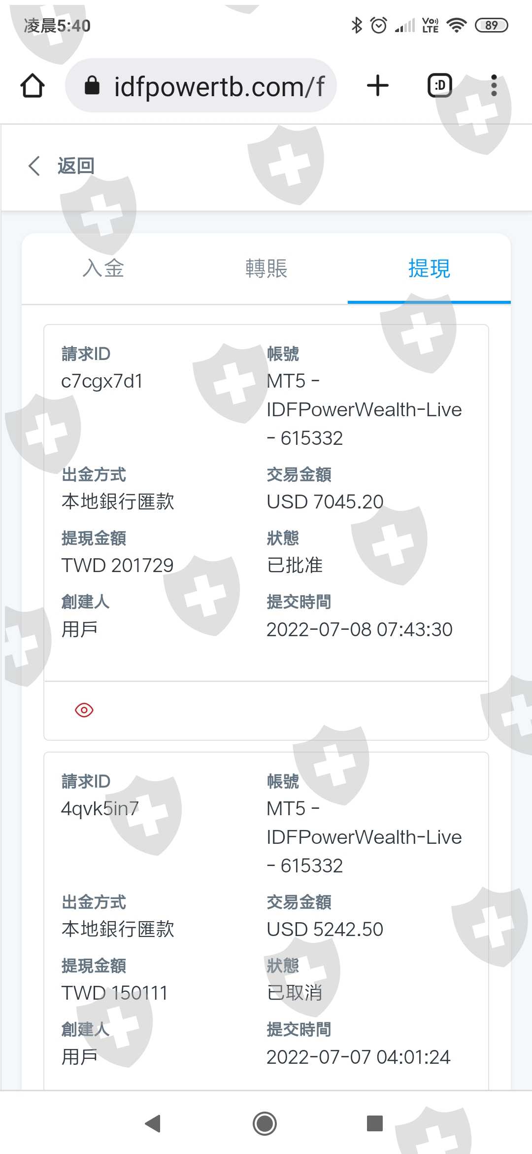 7/7聯絡專員說我要出金,他給我網站我上去提現完,馬上批准,然後錢就被轉走了至今7/20了還沒收到金聯絡專員也都沒回應了