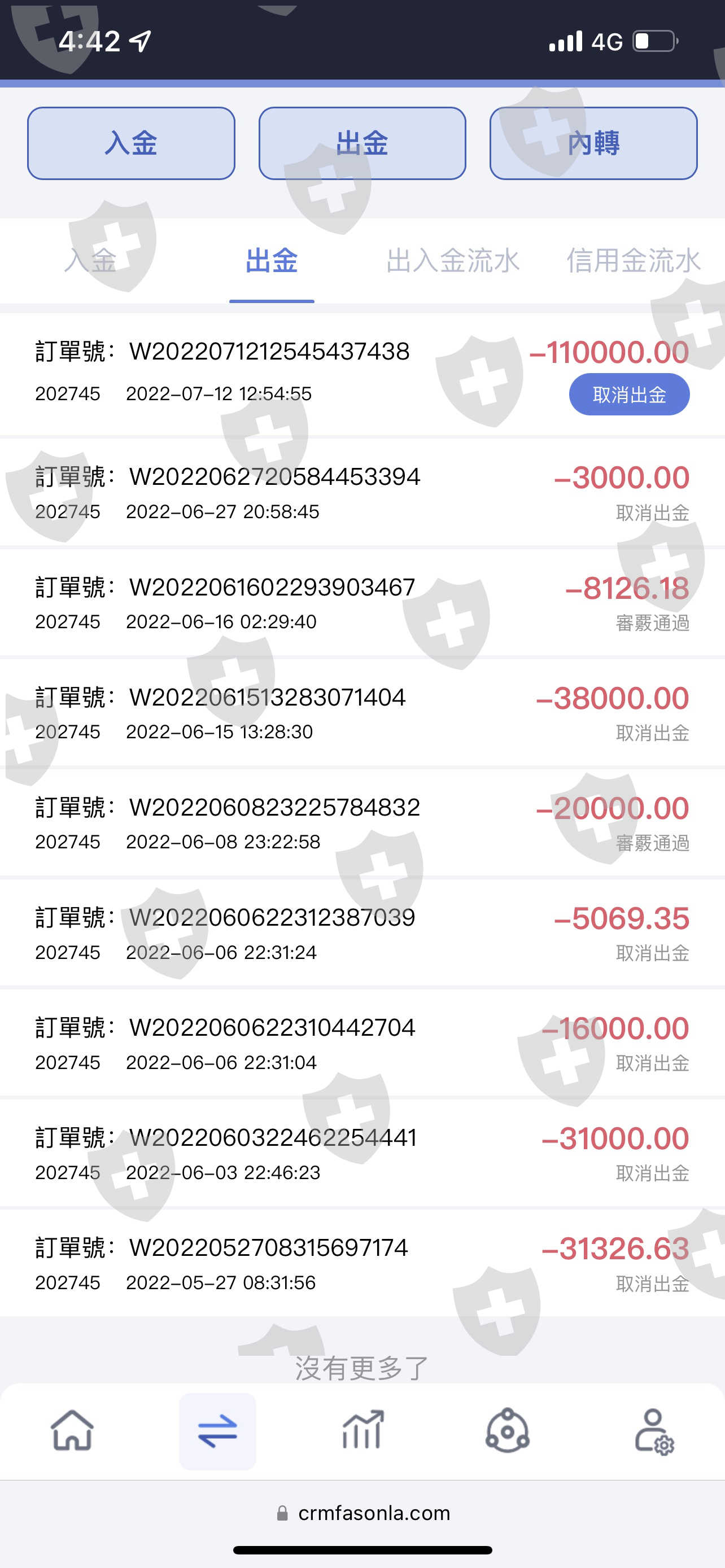帳戶內金額無法出金