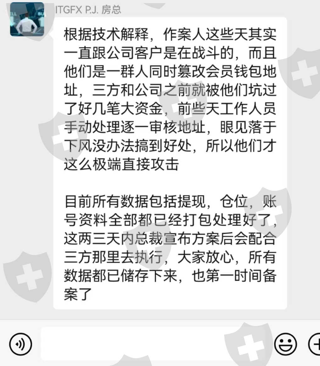 ITGFX从今年3月份开始就以各种理由不能出金,直到7月20日资金直接成负数网站关闭。