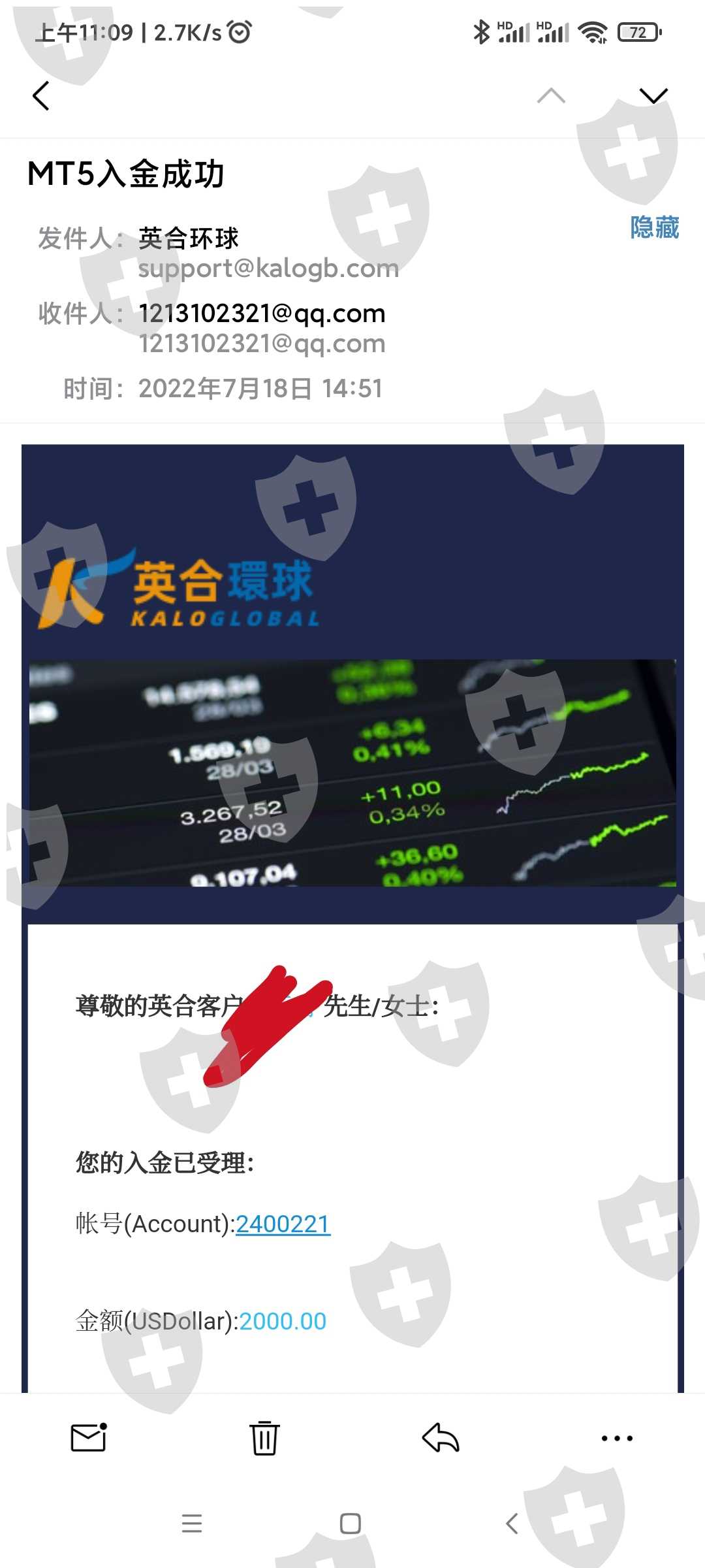 入金2000,做单后盈利8000美刀,出金直接把账号封了,联系官方客服客服说请联系上家,上家无法处理