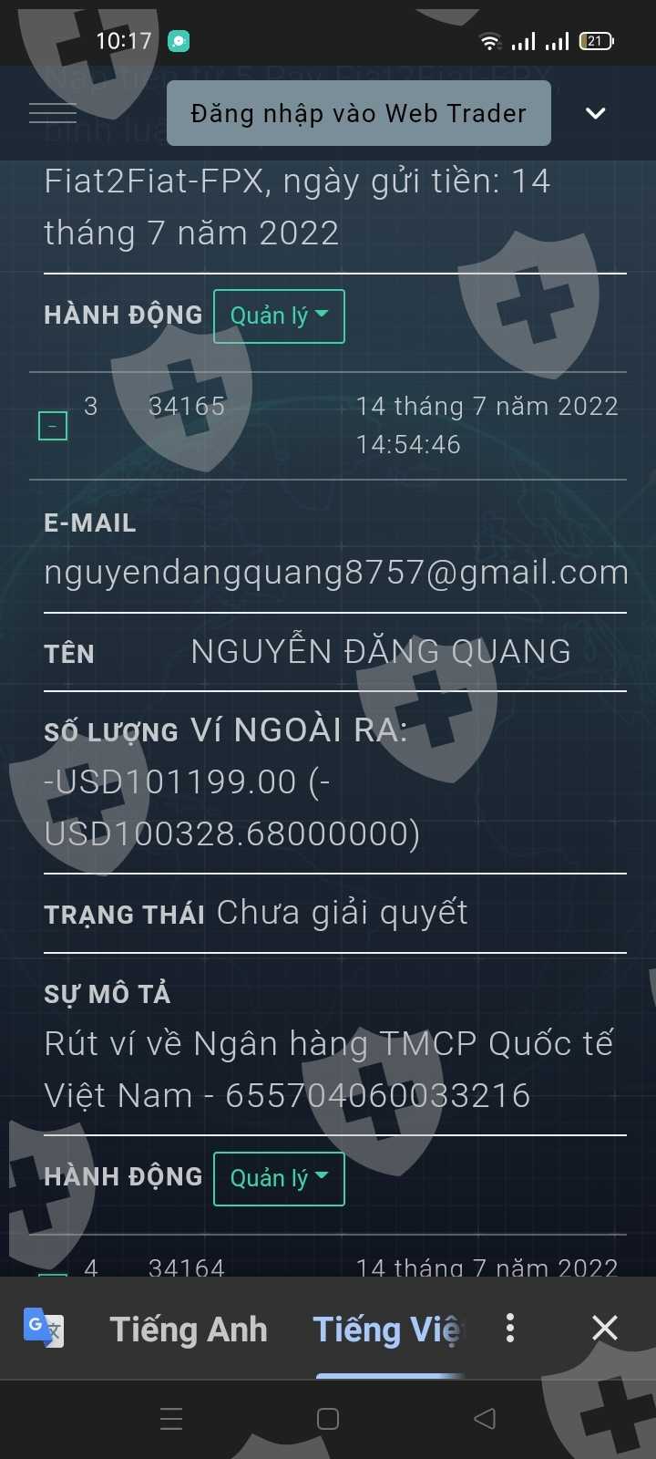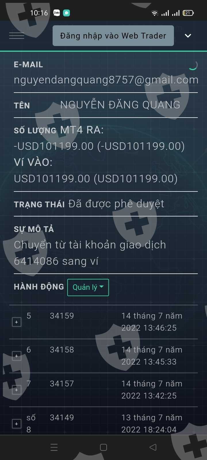 tôi rút tiền nhưng hệ thống không duyệt và yêu cầu phải đóng thuế 2% thu nhập. tôi đã nộp thuế vào tài khoản ví của hệ thống để khấu trừ. sau khi nộp xong hệ thống chặn liên lạc tôi kể cả Email và telegram cũng không liên lạc được.