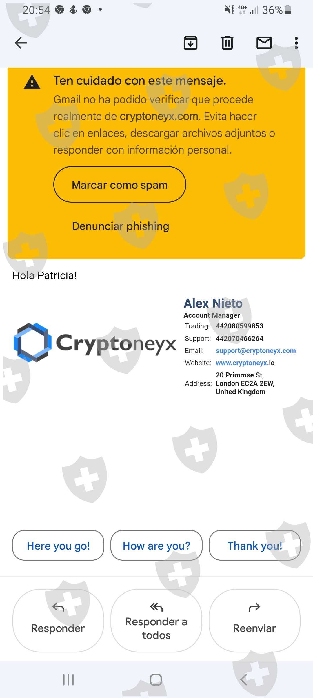 我投资了 250 欧元,在提款时问题来了。他们的电话没有严肃和正式。现在是 www。 Cryptoneyx .io,他们在没有警告的情况下更改了它。不要在这里投资存钱,赔钱。受影响的
