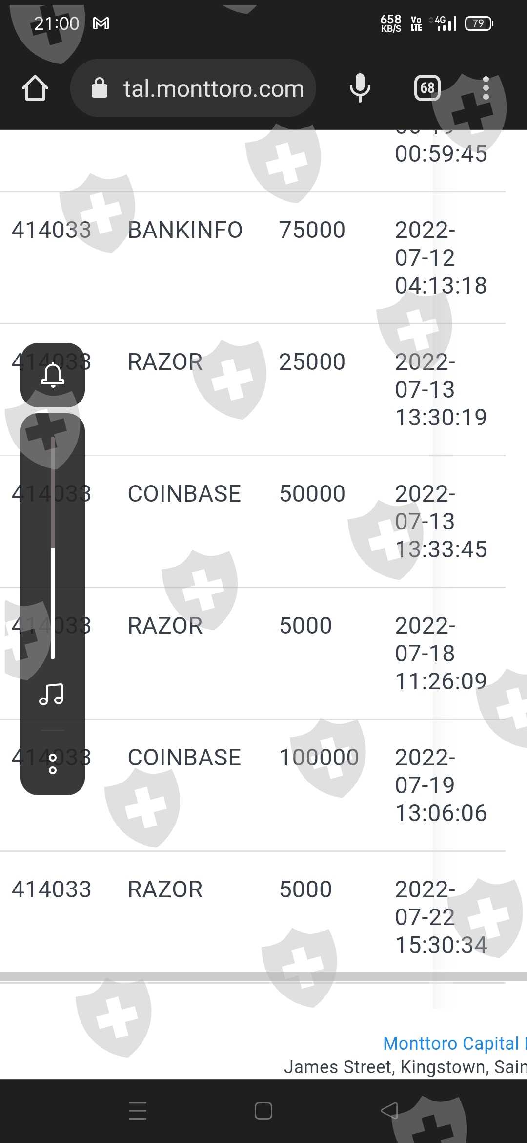 我已经提交了这么多提款但没有处理,都被交易商取消了。 22年7月19日,我的客户经理告诉我将100000用于提款,但22年7月22日我收到了来自 MONTTORO说为了进行提款,您需要通过加密支付存入30000。
