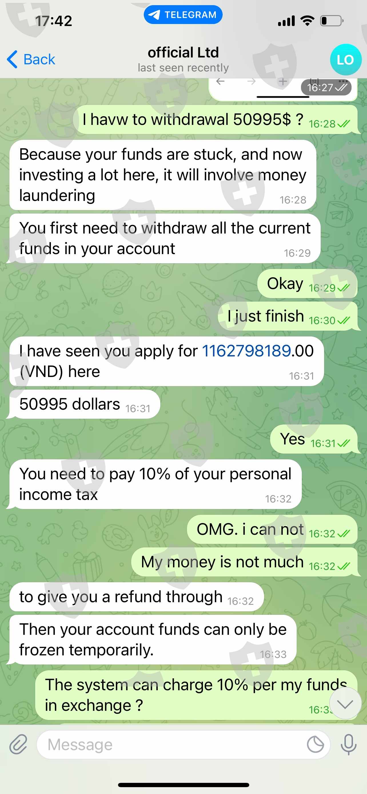 交易是有利可图的,但无法提取资金。联系楼层存入 10% 以解锁账户。这是一个骗局。