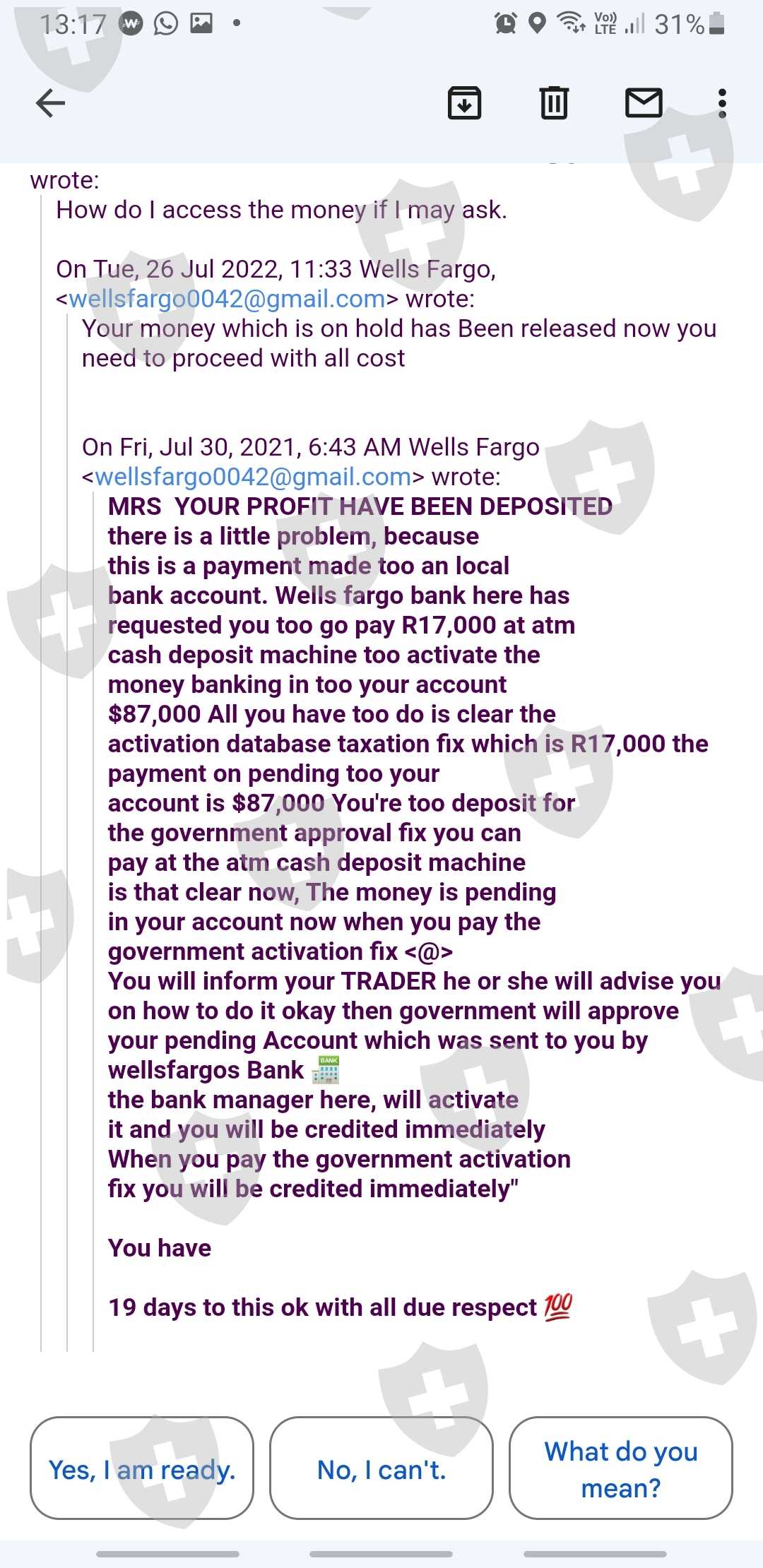 我被这家自称是LUNO的公司骗了。交易商称自己为Barry Seibert。我已经投入了R50000 SA的资金。他们说我在获得批准后应该支付R17000的税款,直到今天我还没有从他们那里收到一分钱。我最近在Whatsapp上拉黑了他们所谓的交易商。我需要你的帮助和介入才能拿回我投资的钱。我通过Luno的地址汇款,我的Luno账户也被封锁了。由于我拉黑了交易商,他们又给我发了一封电子邮件,说我应该与他们再次沟通。请参阅我从公司收到的信件的附件。