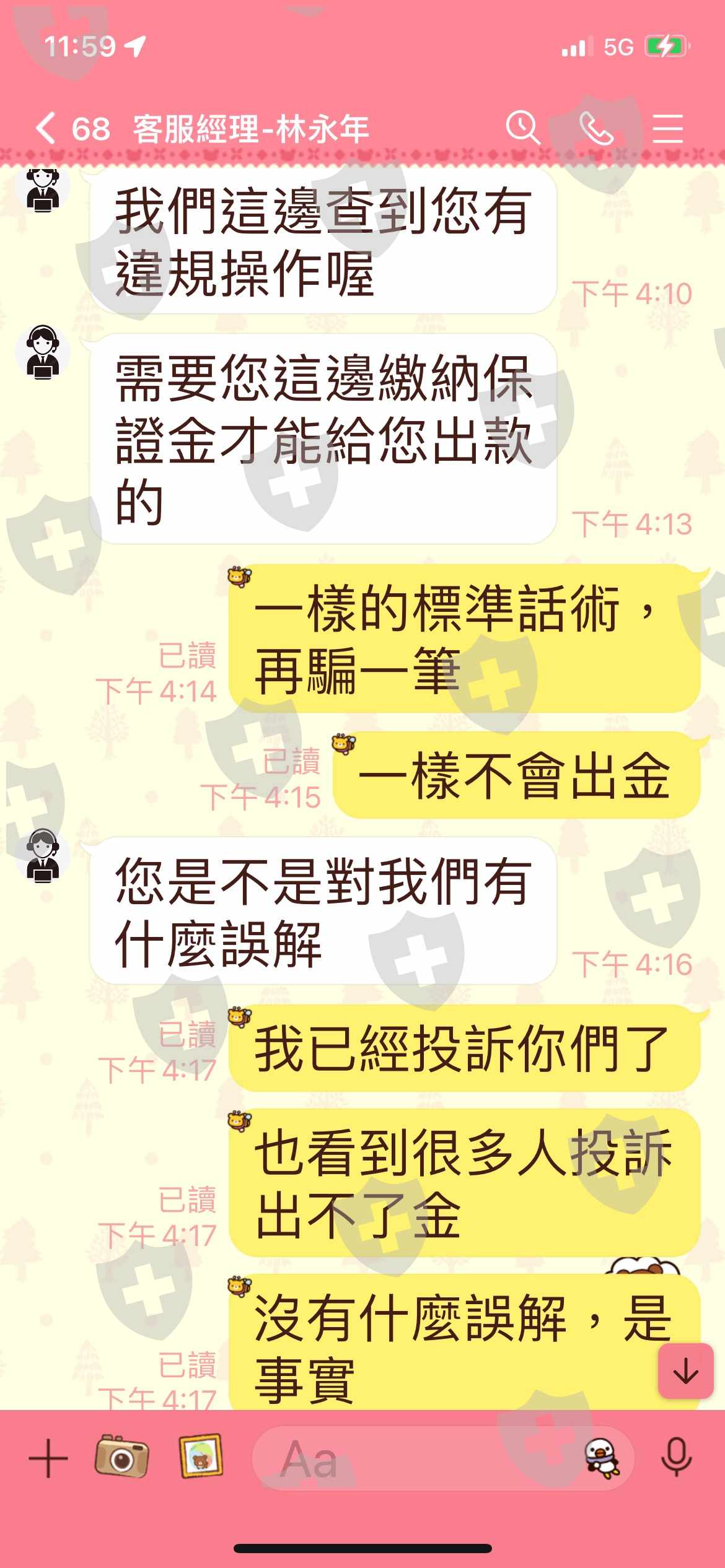 6/18說系統要更新就再也連不上官網,6/22和6/23提出出金,客服經理都不回覆,人也消失了,7/2號客服經理說我違規操作,要先繳保證金,過後我說他們是詐騙集團想再騙一筆,克服經理就再也沒回覆了,從來沒有出過金,畫面永遠停留在待處理,還說我是黑粉,抹黑他們,不是詐騙集團,請問是什麼?
