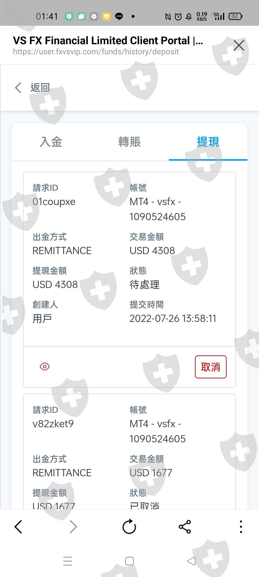 提出金USD 4308,附件有提供我帳戶現況,還有交易紀錄。請幫忙協助出金,謝謝。