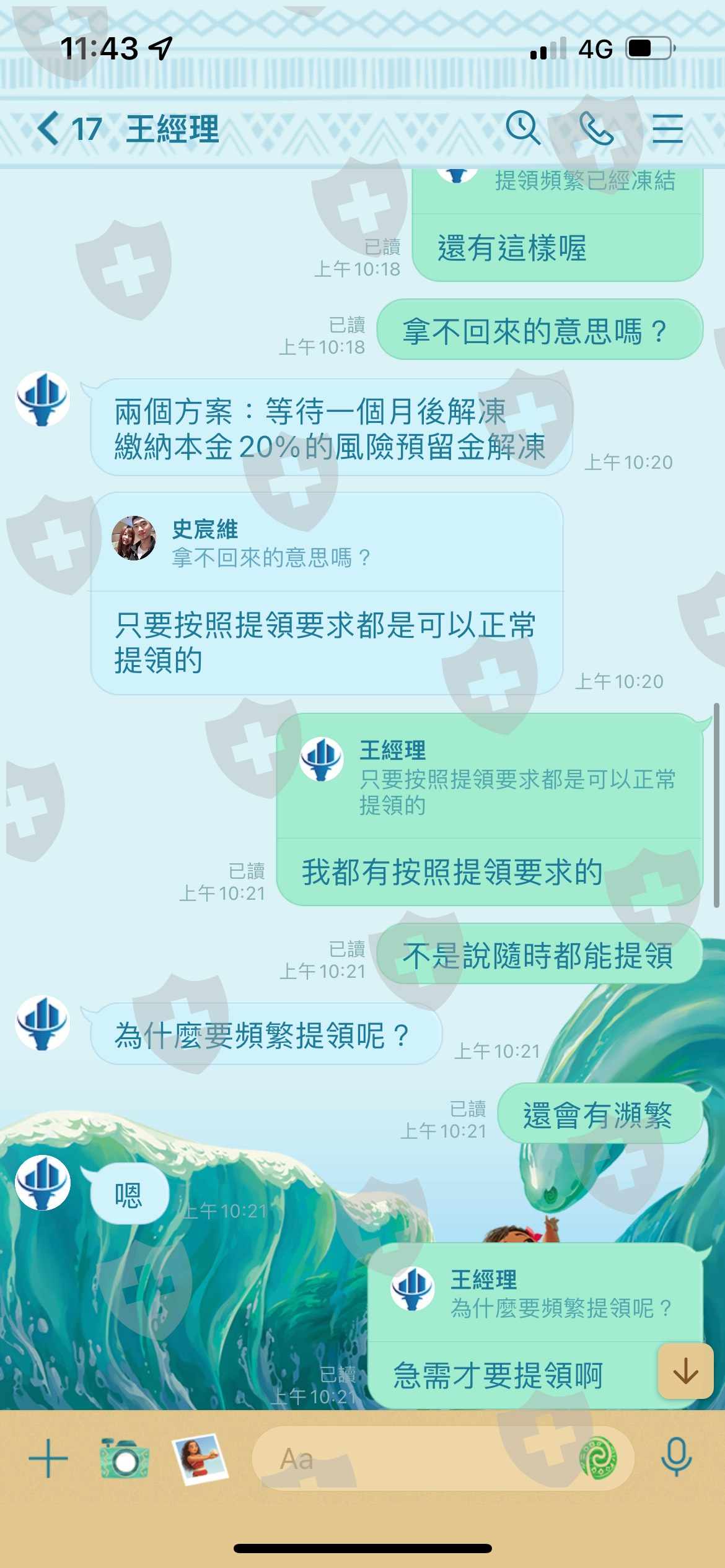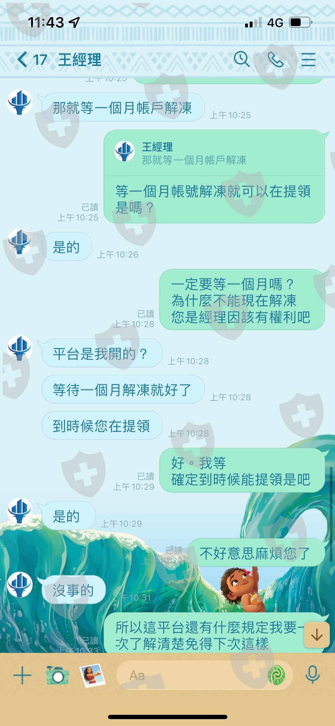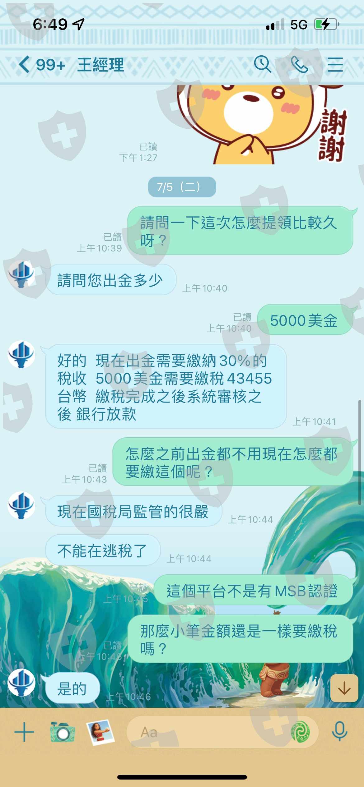 出金11000美金直接封鎖說出金頻繁要求繳納20保證金或者等一個月最後等了一個月要出金5000美金還要我繳納15%稅金問題說什麼不可以逃稅最後直接都不讓我出金要我自己想…一位平台王經理一位助理Fay