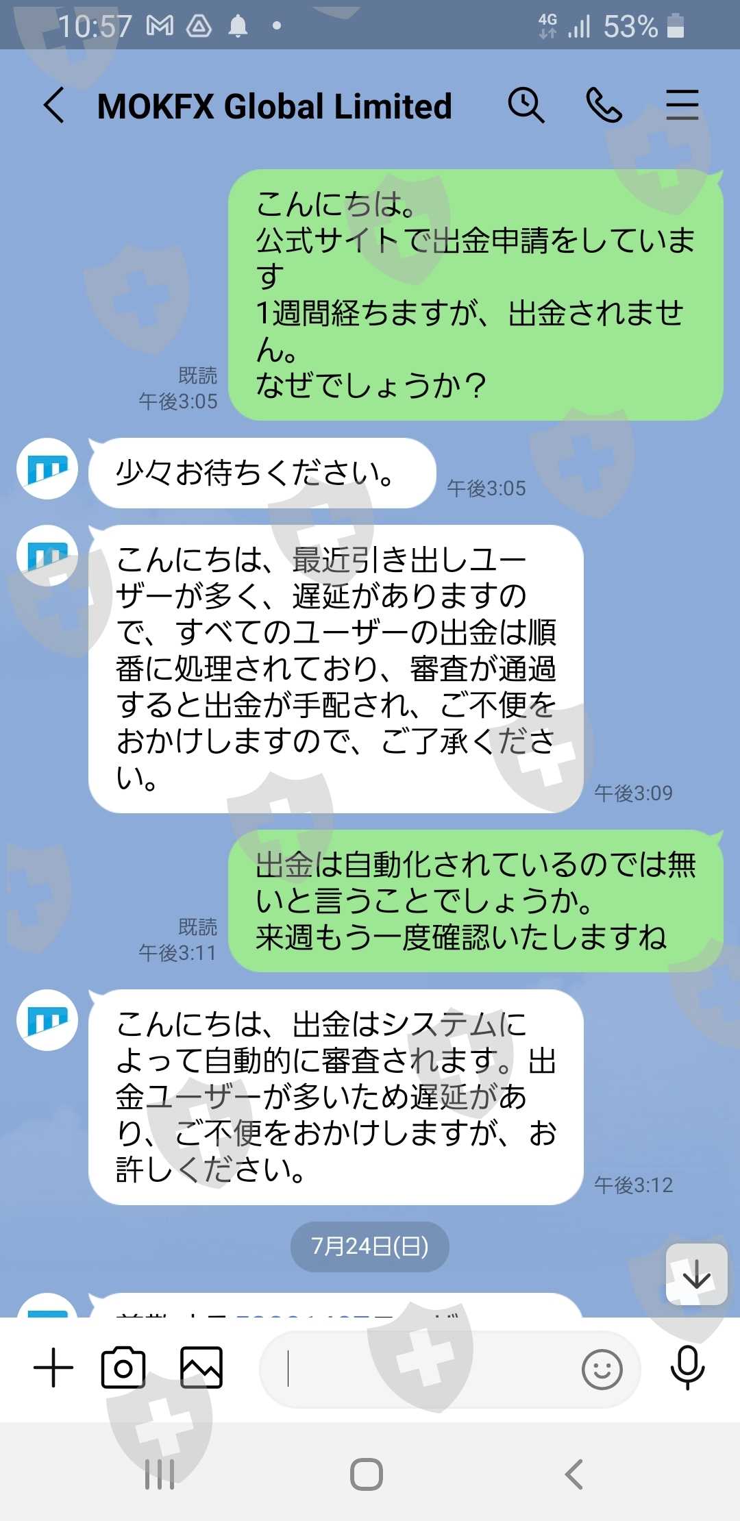 一位住在日本的台湾女士在 LINE 上认识了我,她告诉我她的叔叔有 FX 技术,如果我模仿他的叔叔,我就能赢。 MOKFX是她推荐的,我按照她的指示开了一个账户。我信任她,因为我按照她说的去做而获利。在那之后,她一直要求我把更多的钱存入我的账户。如果你赚钱,你不需要存款,对吧?针对这个问题,需要委托人快速获利。刚研究MOKFX的时候,就发现了几起诈骗案例。当我申请退出试用时,不知为何她立即联系我,让我取消申请。我发现MOKFX和她明显有关联,所以当我要求客服提款时,他们告诉我如果我不支付保证金,我的账户就会被冻结,因为这是欺诈操作。我只想把我存入我账户的钱拿回来。