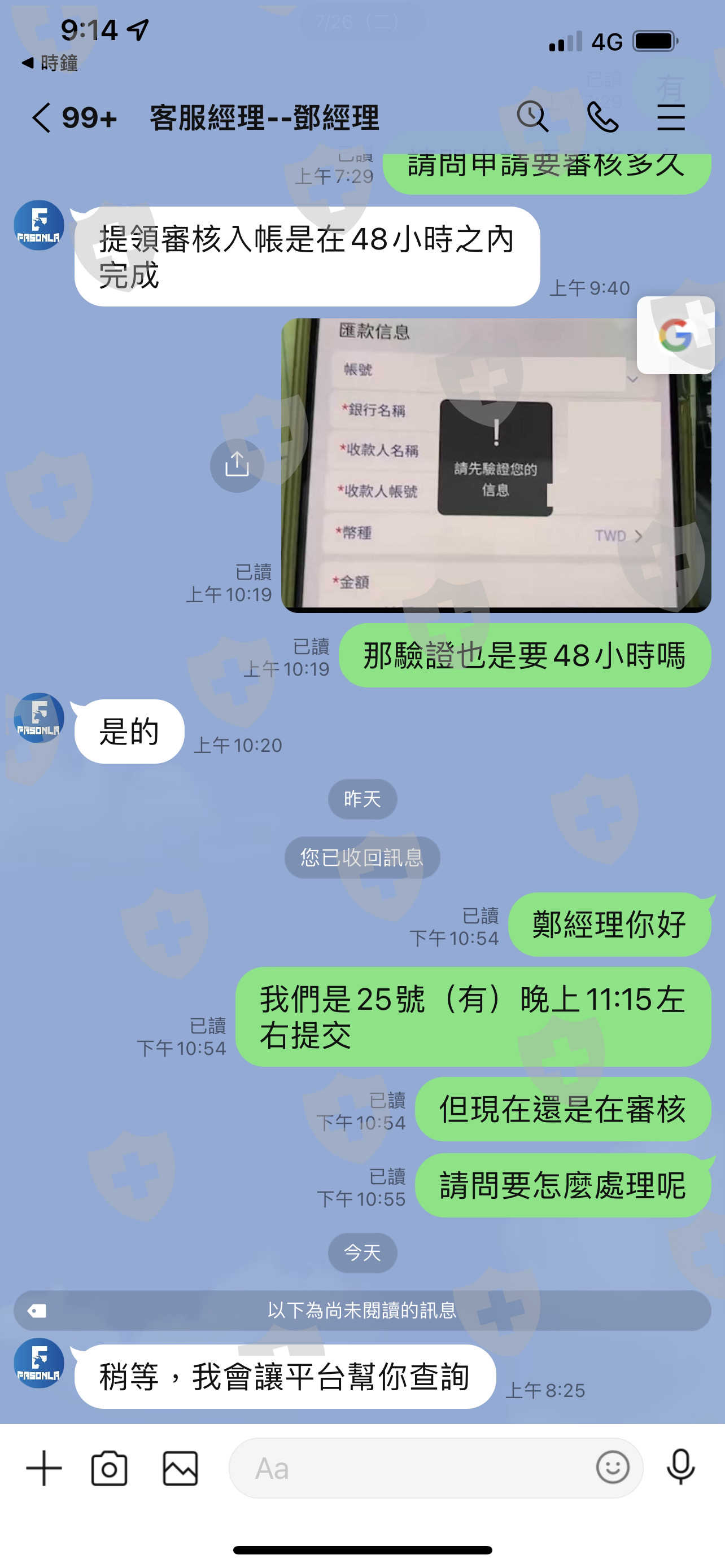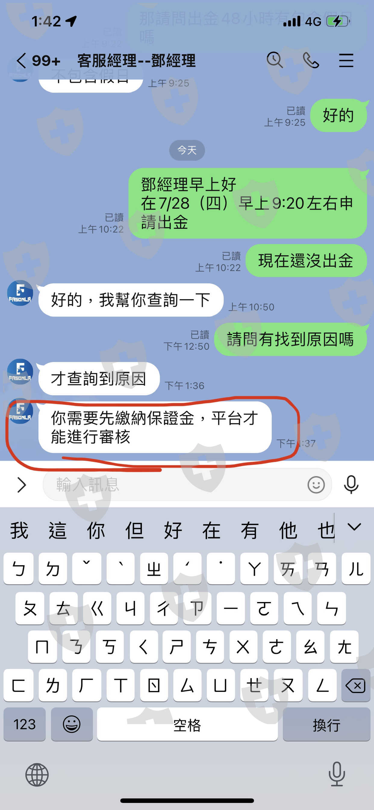 Fasonla的鄧經理宣稱他們公司有美國NFA的普通金融註冊,但NFA官網卻查無資訊。有次出入金平台突然跳出165詐騙頁面,驚覺有異,想趕緊領回資金,但要出金前什麼都ok,鄧經理也告知申請出金,48內審核入帳,過了48小時,主動詢問才告知出金要繳納保證金,而且是臨時決議要收取保證金,嚴重懷疑已涉嫌詐欺嫌疑,出來爆料,希望平台提供協助領回資金,也希望大家不要再受害了!