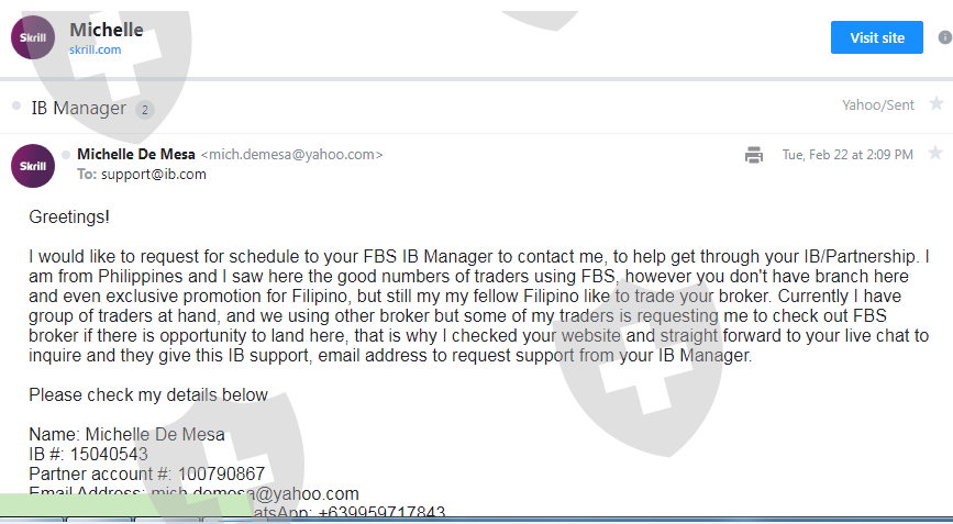 I just want to voice out here the poor support of FBS, since February this year 2022, I have request to their IB manager support via live chat, but until now there is no any reply to my email or any person reaching out me even I have followed all the instructions that the multiple agents that i have talked via their live chat. Very disappointing from very known broker.