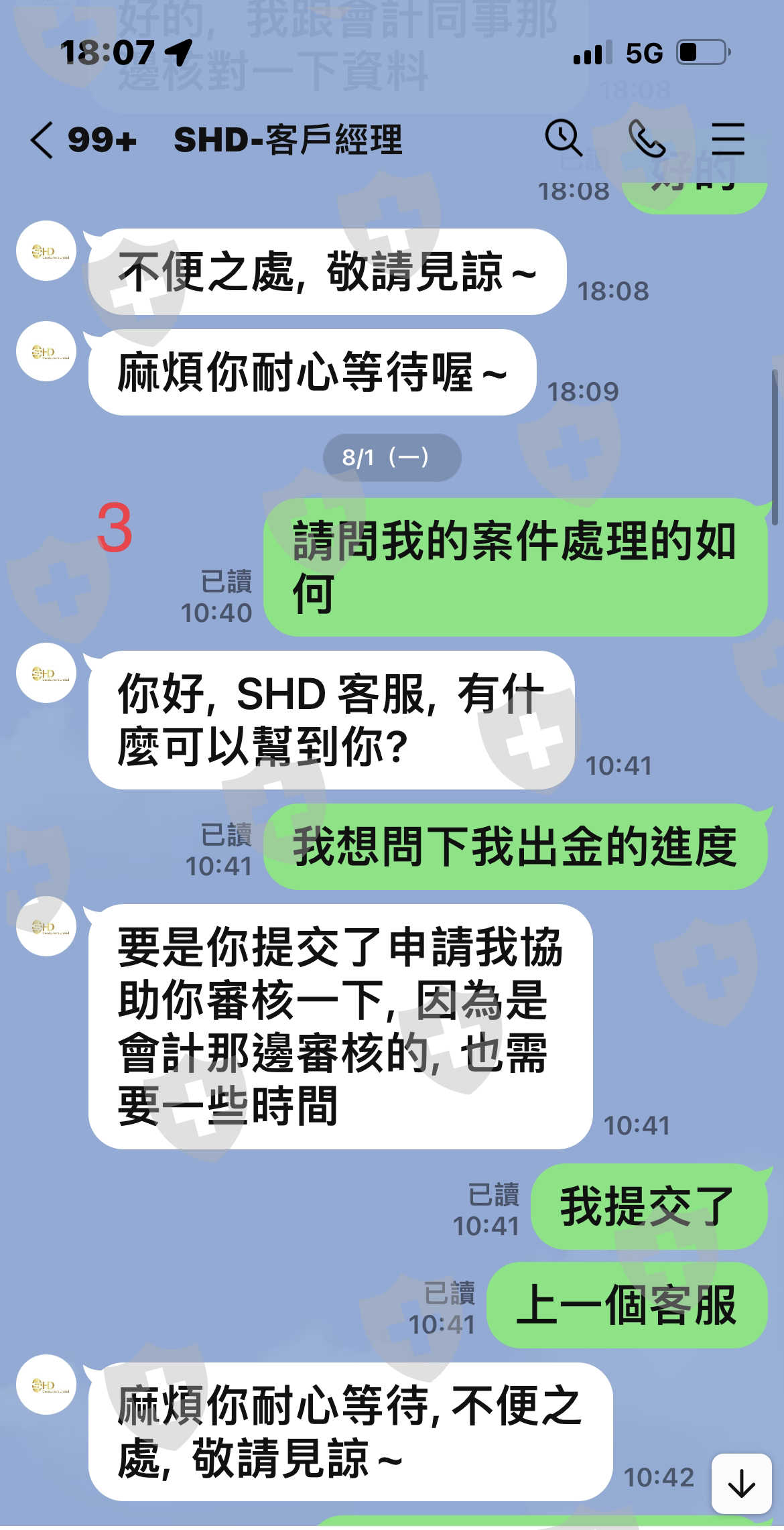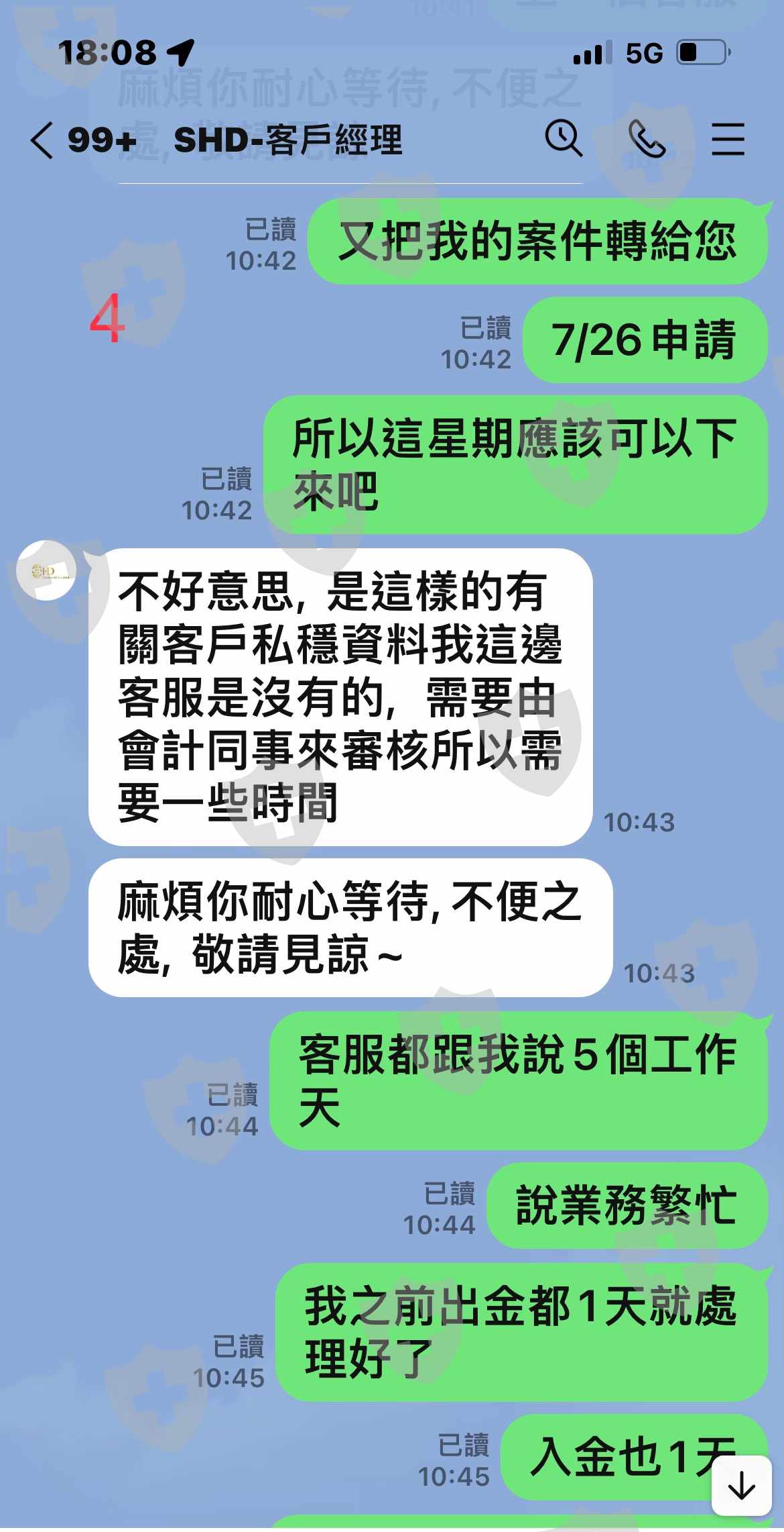 本人透過Dataagetw.com.介紹SHD開戶專員,之後在iex pro平台進行交易。但事後想要出金,2022/7/26日申請至今2022/08/08已經透過3位客服,永遠的回答都一樣,因為業務繁忙請見諒!