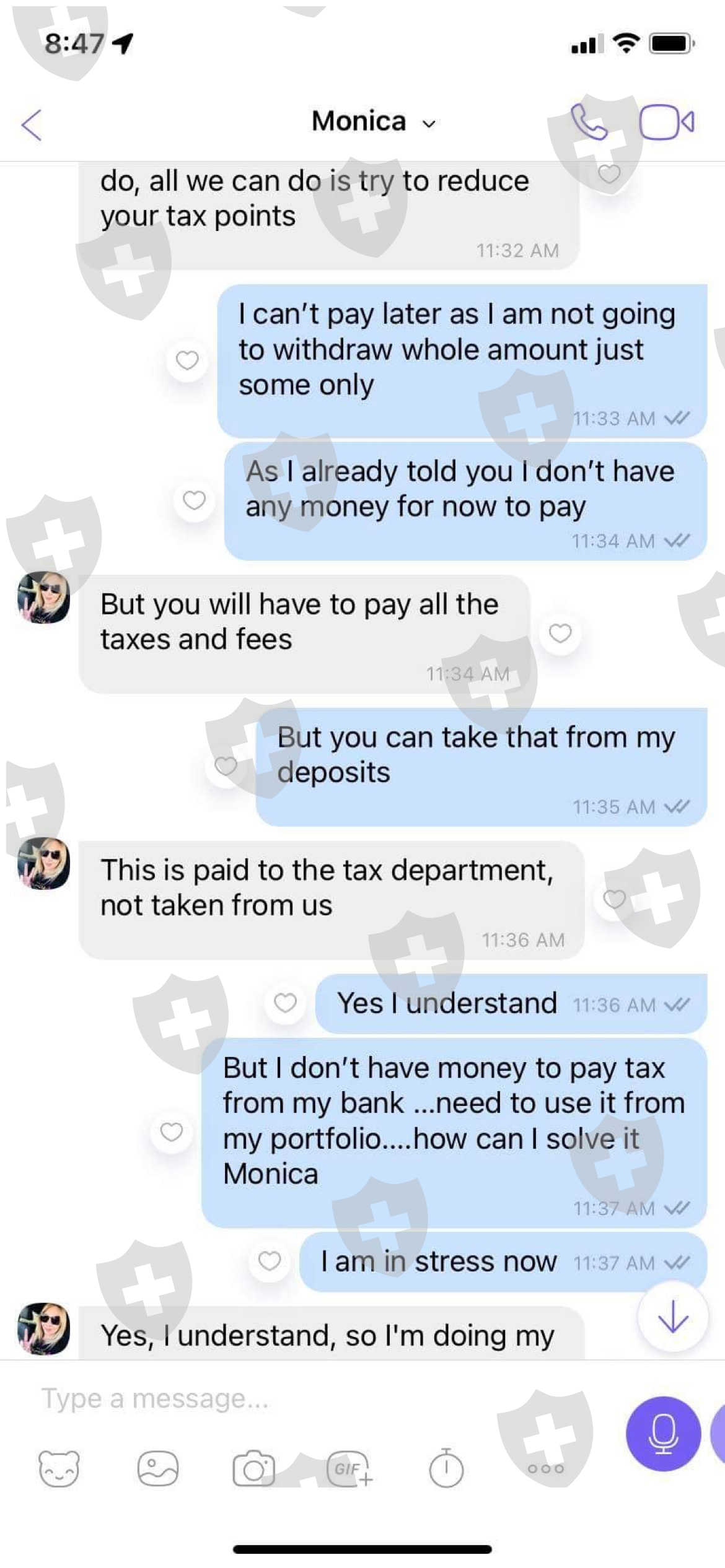 around 949k usd with profit but when I try to withdraw they are asking me to pay tax 20% i have deposited all the money here now don’t have any money for tax …so please help me out with this they trade usually btcusd forex with MT5 …still my money is there but can’t withdraw please help me out. Monica n devis they are the main person Monica contact : +1 (305) 337-7291