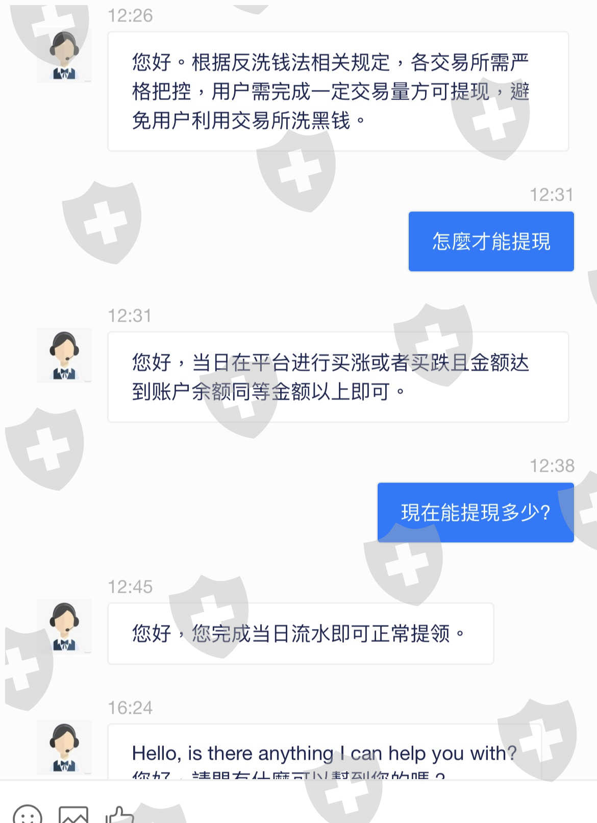 入金可以,但要出金就很多問題,說是反洗錢要求要有交易量才能出金,操作了有交易量了又藉故說賬戶被凍結,需要保證金才可以提現,無法出金。