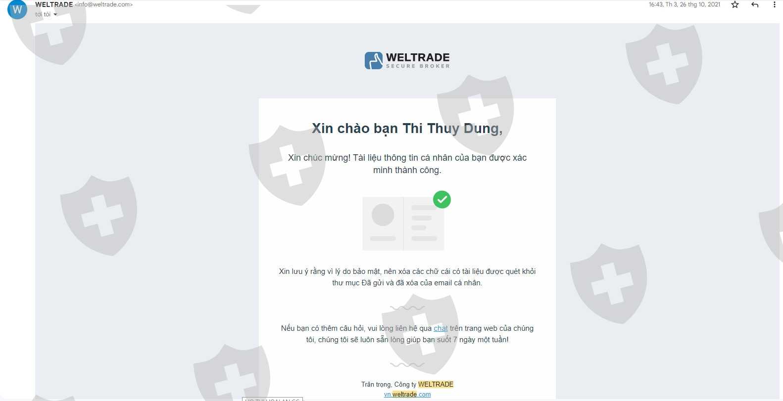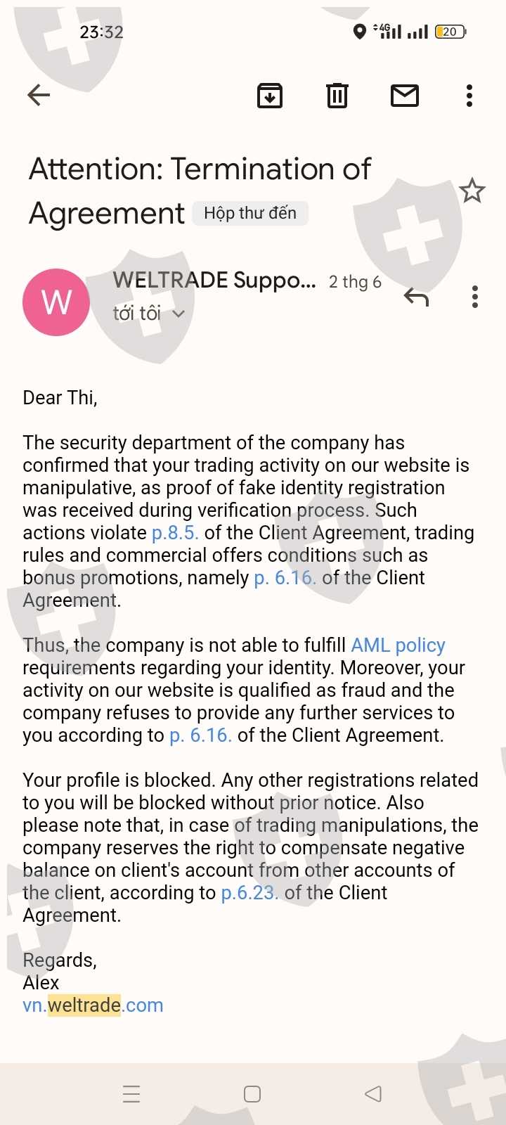 Điều này rất vô lý vì ngay khi mở tài khoản, tôi đã vượt qua KYC bằng cách gửi chứng minh nhân dân và đương nhiên được weltrade phê duyệt.