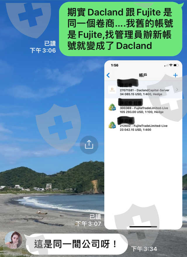 如題….Dacland 與Fujite trade 是同一間公司、同一個網路客服人員,同樣也是一個黑心詐騙平台。出金會找各種理由跟繳一堆費用(稅金、平台管理費、風控風險金)讓交易者領不出錢。最後把帳號凍結….或是直接讓交易者爆倉。