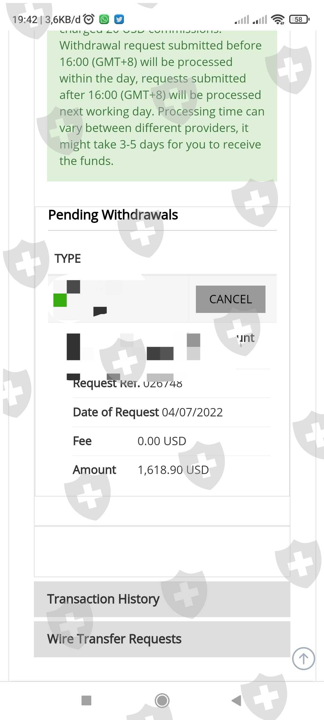sudah mengajukan penarikan sejak 4 Juli, dan sudah lebih sebulan pengajuan tidak di setujui. sudah mengirimkan pesan ke support namun tidak kunjung di balas. sebelumnya sudah memotong rebate milik saya sebesar 2.000$. broker tak terpercaya