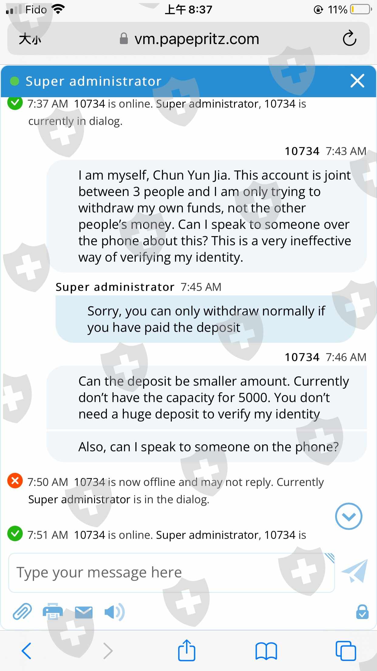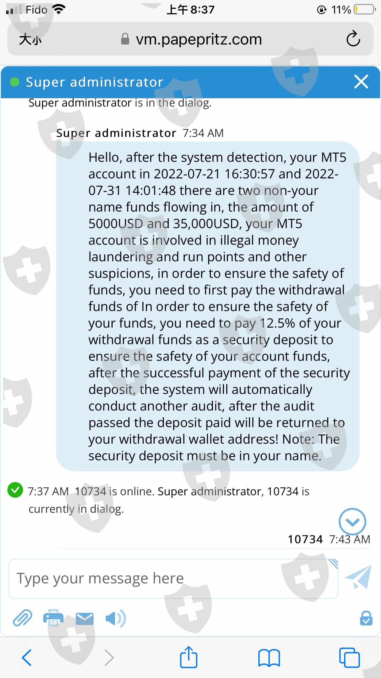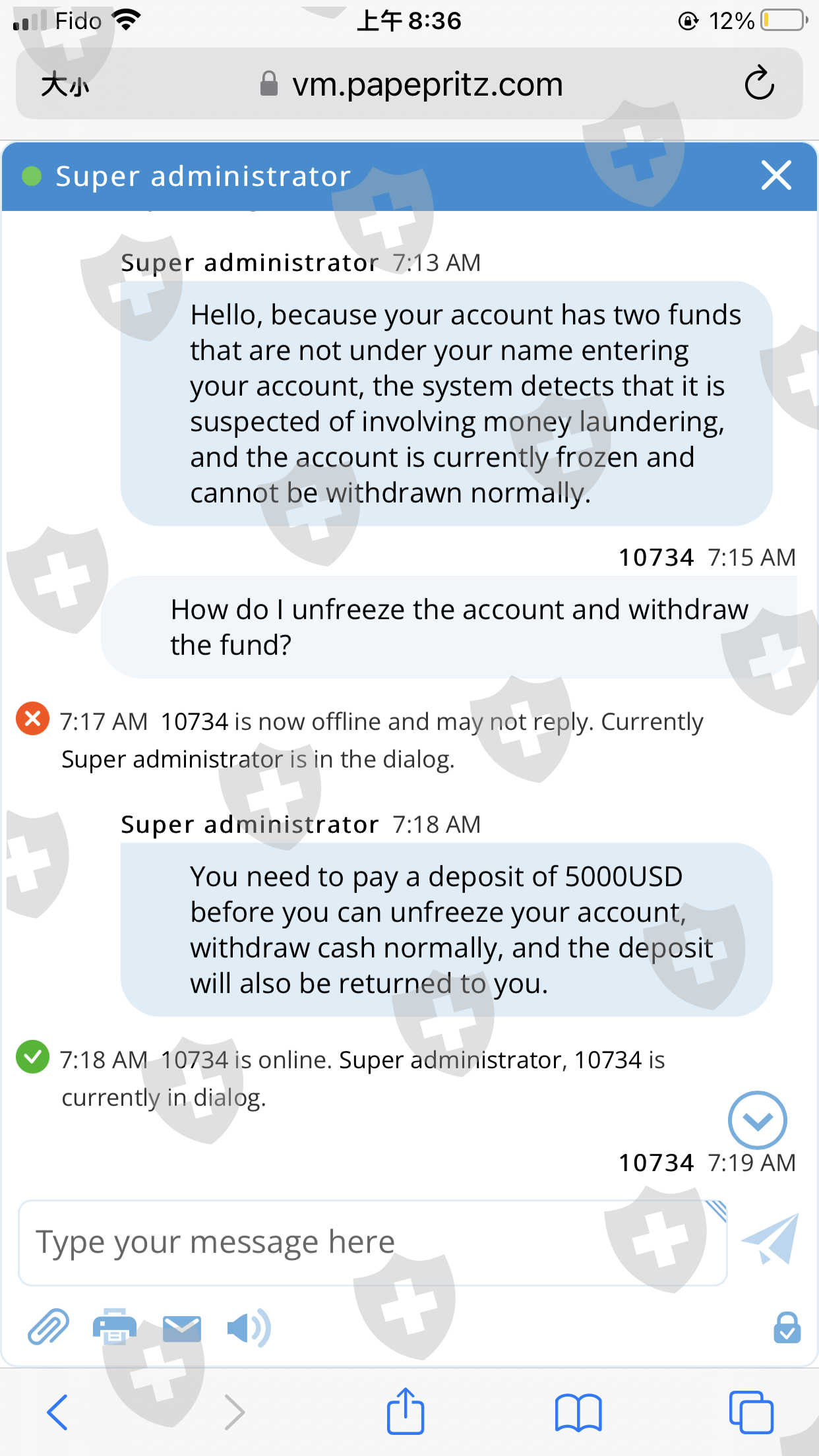 2022年6月25日,我在网上认识一个叫杨锐的人,他介绍我入金huhang平台炒比特币,我于7月19,21,26,30,共入金10780美元,24号出金1000,其间这个叫杨锐的人往我的帐户里入金两次,一次7月21日5000,一次7月31号35000。但是8月12,13日我申请出金3次,都未成功,联系客服,客服回复说,因为有不是我名字的人往我的帐户里打了两次钱,他们怀疑我在洗钱,把我的账户冻结了,如果解冻需要我再交纳5000美元。我意识到我遇到了骗子和骗子平台,恳请你们能帮我解决问题,帮我把我入的这10780美元取出,这都是我的血汗钱。我在这里先说一声,感谢。期待您的回复。