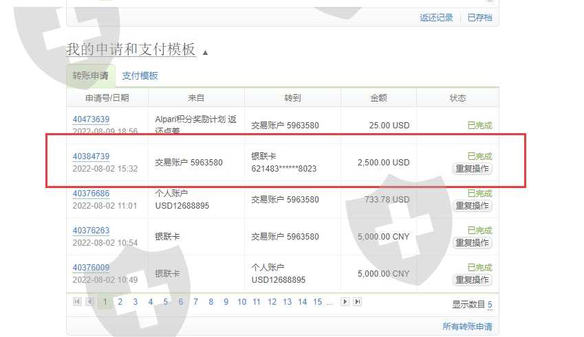 我在2022.8.2从Alpari Limited申请的2500美元出金,当天就显示已完成,但是一直不到账。