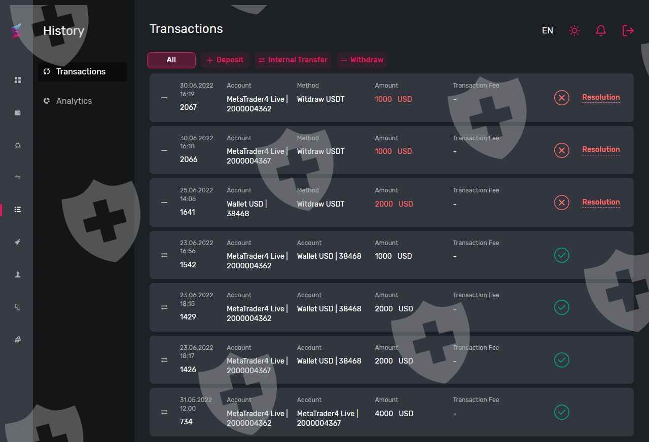 2022 年 5 月,我在开设了一个账户,并与他们交易了几个月。当我想提取我的部分利润并提交了一些提款请求时,一直被拒绝,请参阅图1和图2的提款请求。每次我提出提款请求时都会收到拒绝的电子邮件且没有理由,见图4。过了一会儿,当我登录到客户入口想提款时,一条消息提示没有这个货币对的汇率,见图3。我给客服发了几次邮件,但没有得到回复。我还需要从他们那里拿回大约12,000,但没有人回复我。任何形式的帮助我都将不胜感激。
