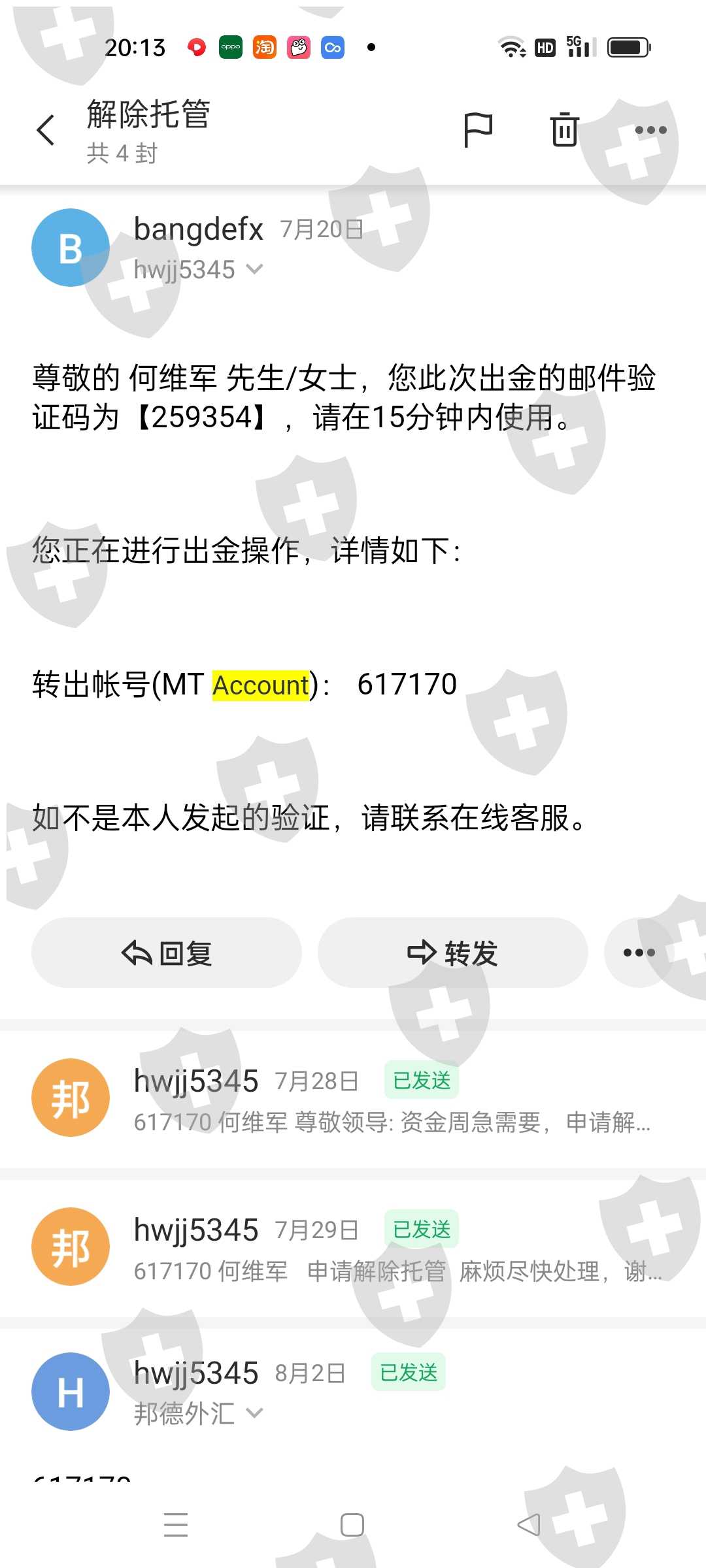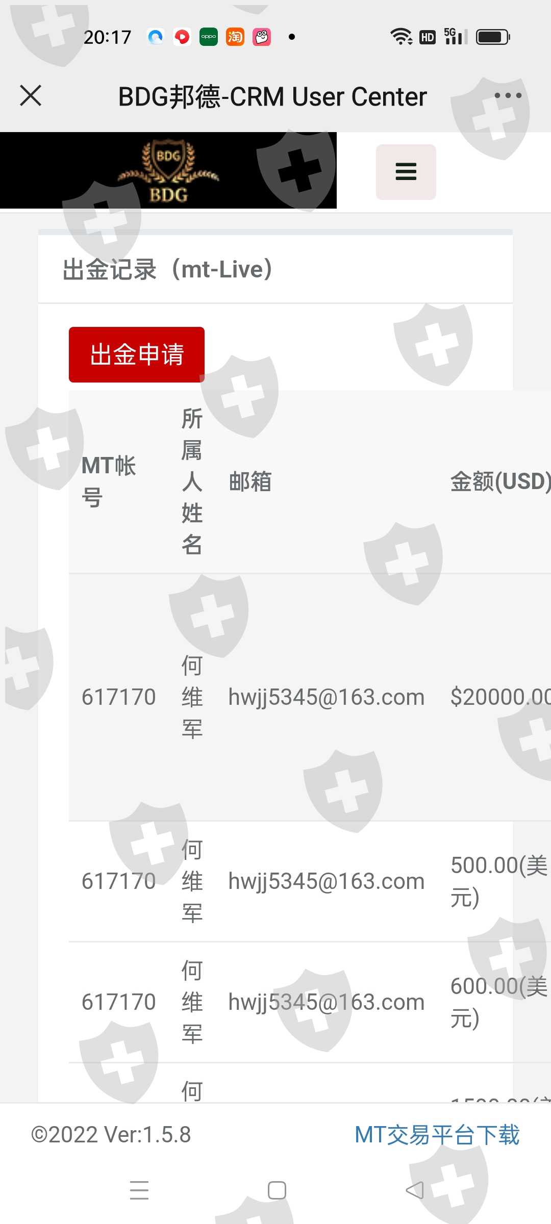 本人在2022年3月邦汇外汇投入以来,账户还有三万多美金,从2022年7月20申请出金20000美金,直至今日2022年8月19日,申请一直未成功。希望贵平台以客户诚信第一为宗旨,满足客户需求。谢谢合作,本人MT4账户617170
