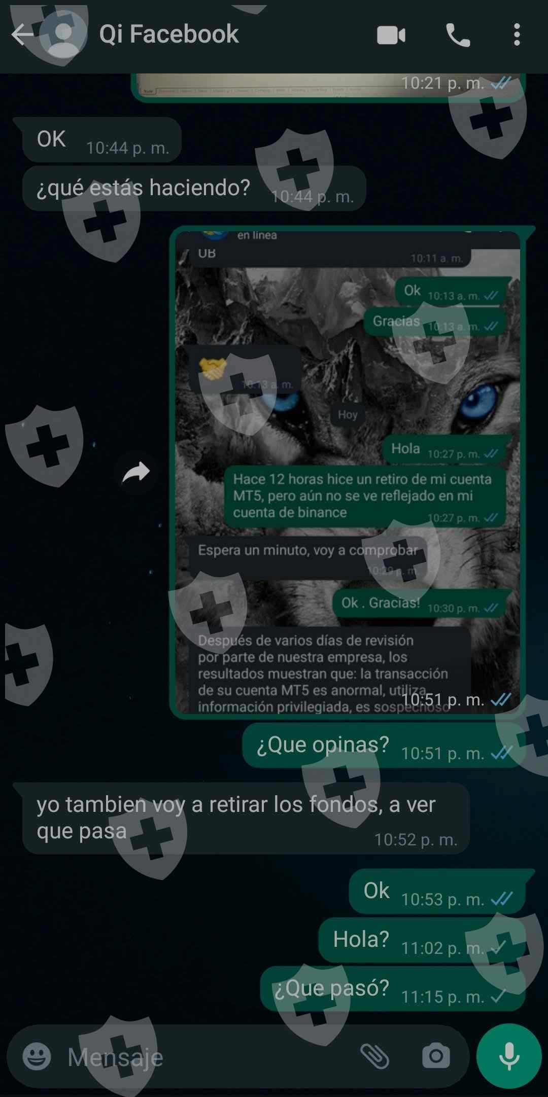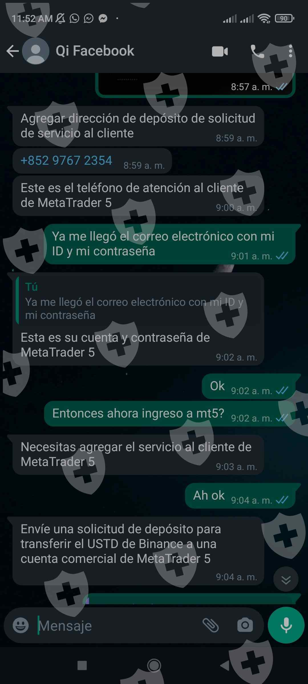 我通过脸书认识了一位自称吴美琪的女士,她告诉我她来自香港,她一直在秘鲁直到 03/22,但她计划在今年 2022 年 9 月返回秘鲁。几天的聊天她告诉我她把钱投资在金融市场,更具体地说是货币,这对我来说似乎很正常,因为香港是中国的金融中心。随着时间的流逝,她向我寻求帮助才能进入她的账户,因为她不能从香港做,因为那里限制了很多应用程序。所以我同意帮助她交易,但一切都在她自己的账户上,因为她让我下载元交易者 5 应用程序,有一次在 mt5 账户内寻找经纪人 YABO MARKET LIMITED. 用她的账户进行了两次交易后,她主动教我如何为自己创建一个账户,这样我就可以快速赚钱,我认为这非常好,因为每天的利润在 6% 到 13% 之间,因为据说她有特权她的哥哥是美国一家金融公司的大三学生提供的信息,这就是为什么她也投资了所有的积蓄,而不用担心失去它们。事实上,她对我来说似乎是一个值得信赖的人,因为她每天早上和下午都给我写信,我们聊了很多,她还给我发了她的照片和视频,她正在做的活动甚至还有她家人的照片。所以一开始我决定投资100美元,单笔交易利润13美元,后来我决定再投资200美元,再投资200美元,每天的利润相当不错,一开始它让我可以毫无问题地提取利润(3次),我还必须说,她一直坚持要我投资更大的金额,因为当她来秘鲁看我们时,她将不再拥有那些特权信息,她的坚持是太烦了,我开始怀疑她了。我告诉美琪,我现在不会再投资了。所以她很生气,告诉我也许她对我期望太高,第二天早上(08/18/22)就不再和我说话了……但是在同一天晚上(08/18/22)他说话了再次让我再次交易,但他没有提及继续投资。我还必须说,在 22 年 8 月 18 日上午 9 点左右,我决定提取 1344 美元,但金额没有从币安到我的账户,所谓的mt5客服告诉我,我不能这样做,因为他们检测到我在使用内幕消息并且我的帐户已被封锁……为了解除封锁,我必须再次存入500美元到币安账户 YABO MARKET LIMITED……我回复了,你是不是想骗我?之后他们就没有再回复我了。然后我问美琪这是怎么回事,为什么mt5客服告诉我?,她只回复说她也想抽她的钱看看怎么回事,然后她就没有再回复我了,我总共损失了1800美元,请小心这种诈骗方式。