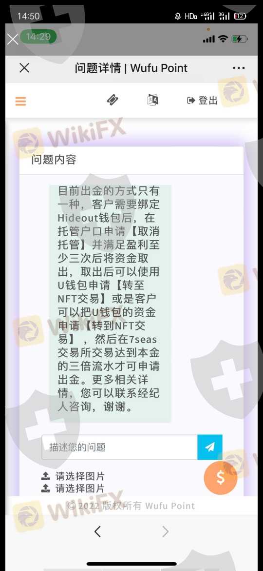 无法出金,说的团队解决,等3天,已经等了半个月了,团队人热联系不上,骗子平台,MT5也是假的,一问同行,说的是虚拟平台,为了骗钱也是费进心机了,