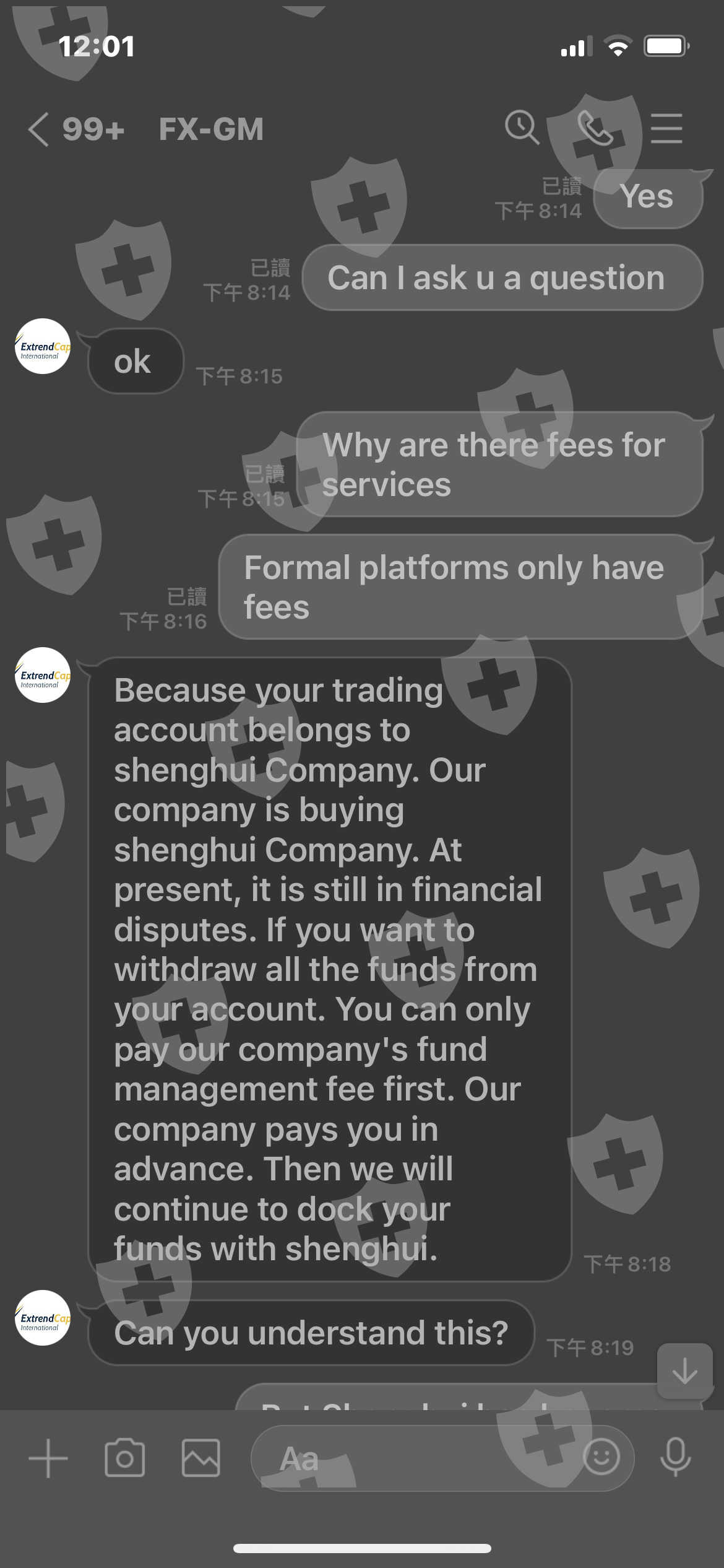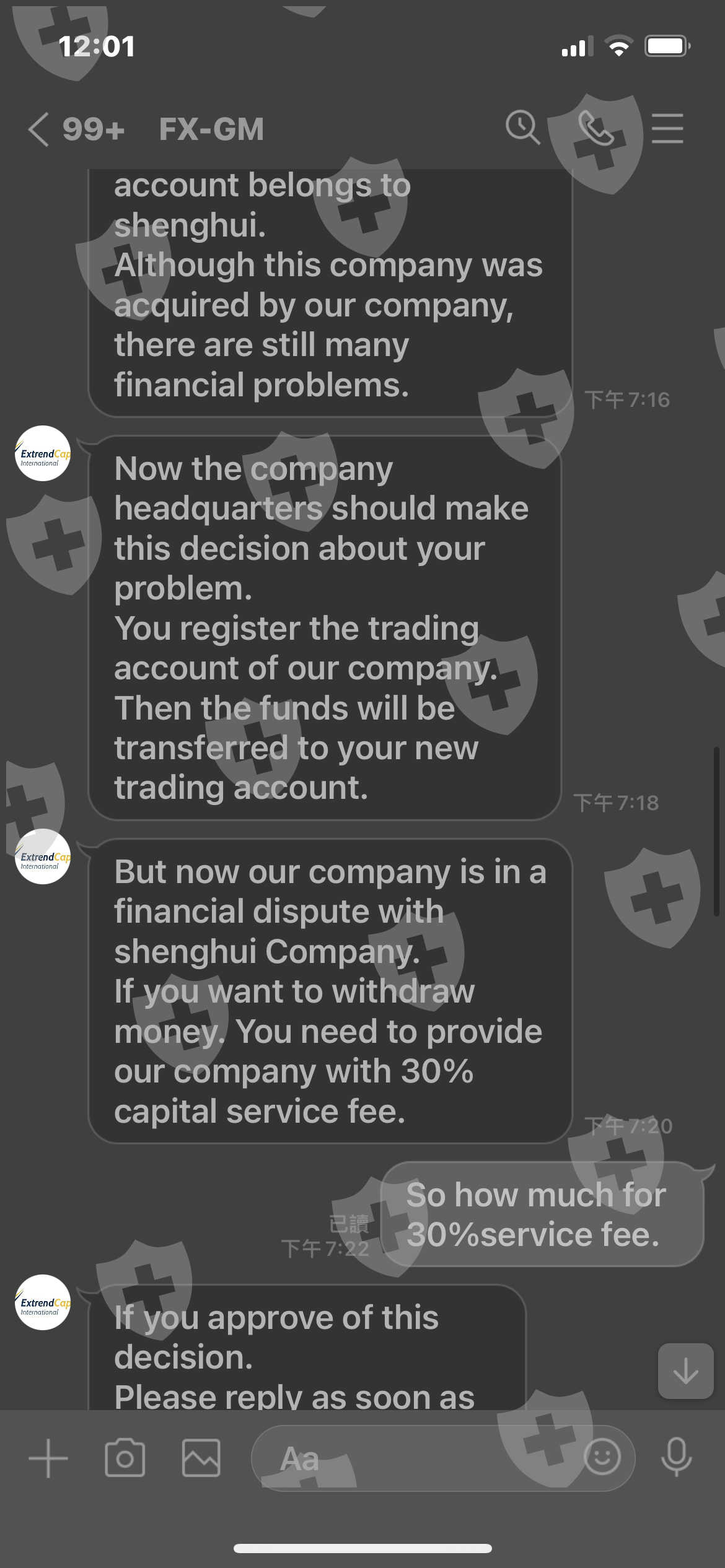 這平台就是之前的shenghui平台,我跟平台告知shenghui 未出金給我,extrendcap告知我有收取服務30%手續費,如果我要出金的話,因為extrendcap告訴我他們公司已收購shenghui!