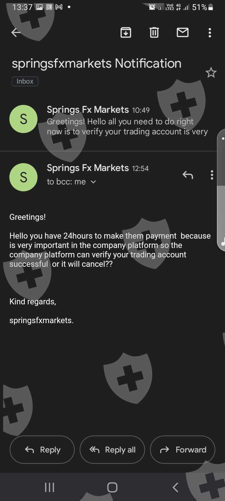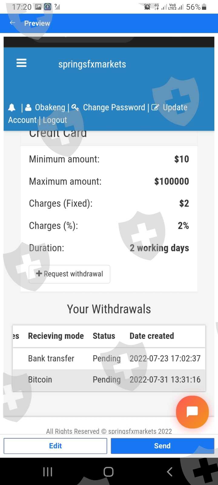 我在 springsfxmarkets.com 上投资了 150 美元 我的利润是8300美元。我想提款,仍然等待中,然后收到一封电子邮件说我需要支付 R6500 的验证费我才可以提款 我需要帮助