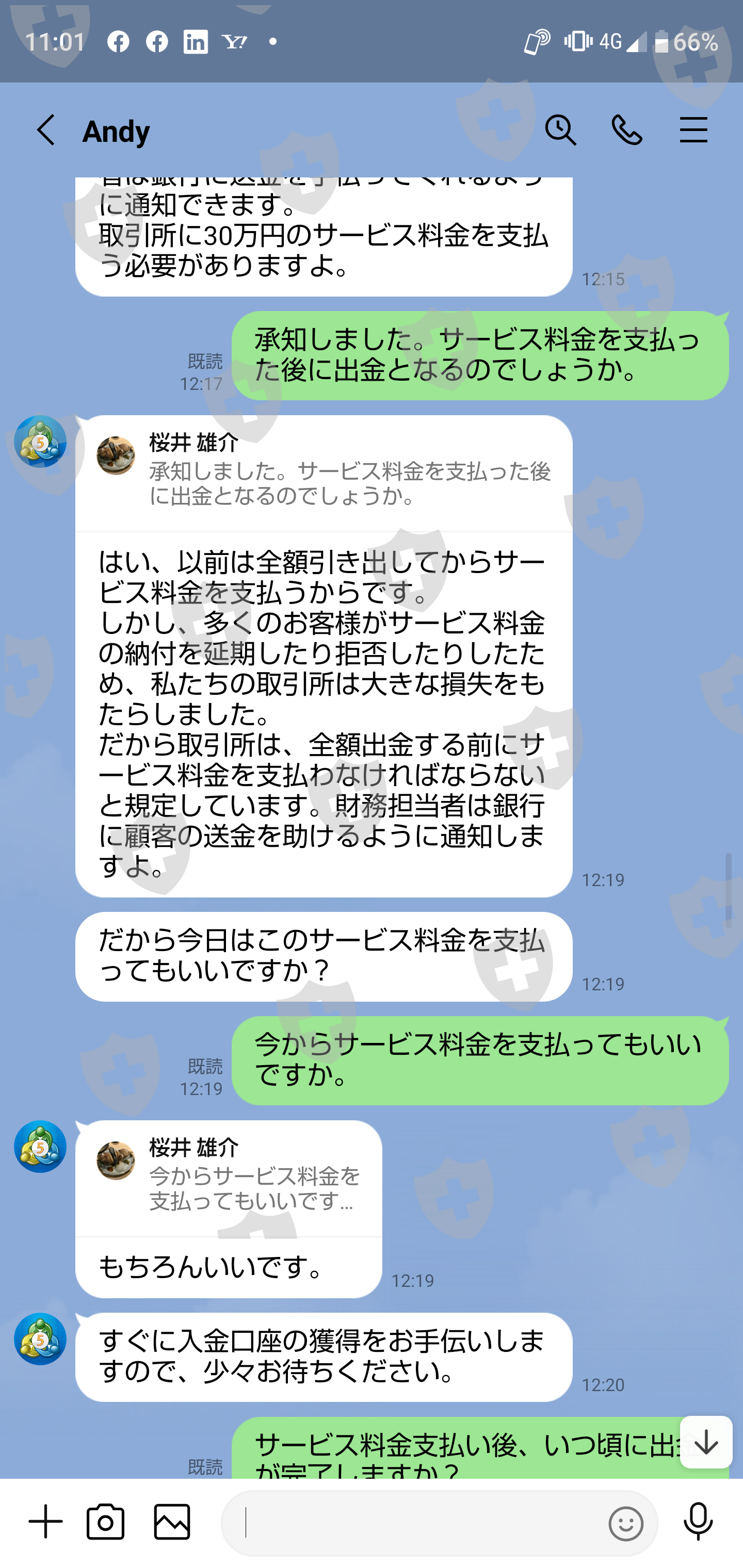 マッチングアプリで知り合った女性からの紹介で海外のFX取引所の口座を開設し、資金を投入して、取引をしたのですが、口座担当者に、口座内の113,301.63ドル(その時点で日本円にすると、15,510,572円)の全額出金を申請したら、まず、全額出金前にサービス料金30万円を支払うように連絡があったので30万円を振り込んだ後、出金の審査に合格しましたと連絡を受け、ほっとしていたのですが、その後、1000万円を超える出金はマネーロンダリングに当たるとして、保証金として50万円を支払うように言われました。さすがにおかしいと思い、いろいろな口実を付けて、出金をさせないようにしているのだと思いました。出金ができず非常に苦しんでいますので、公開させていただきました。